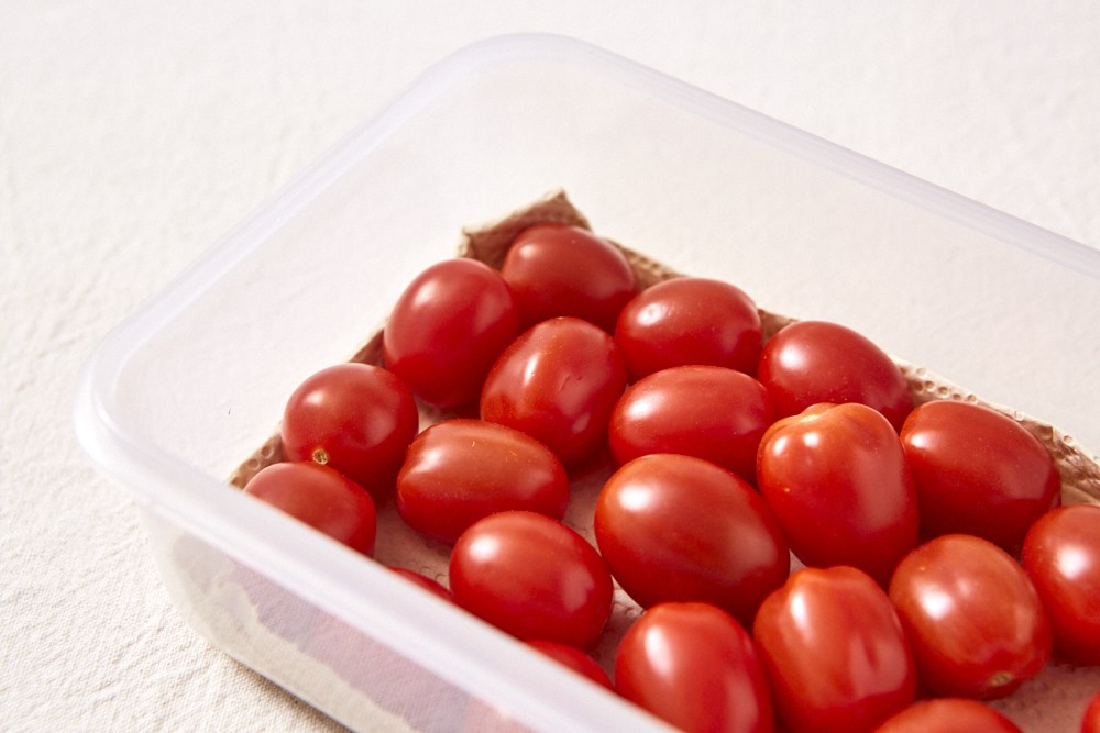 · 깨끗이 씻은 방울토마토는 물기를 꼼꼼하게 제거해 키친타월을 깐 밀폐용기 안에 넣어 냉장 보관하시는 걸 권장드려요.