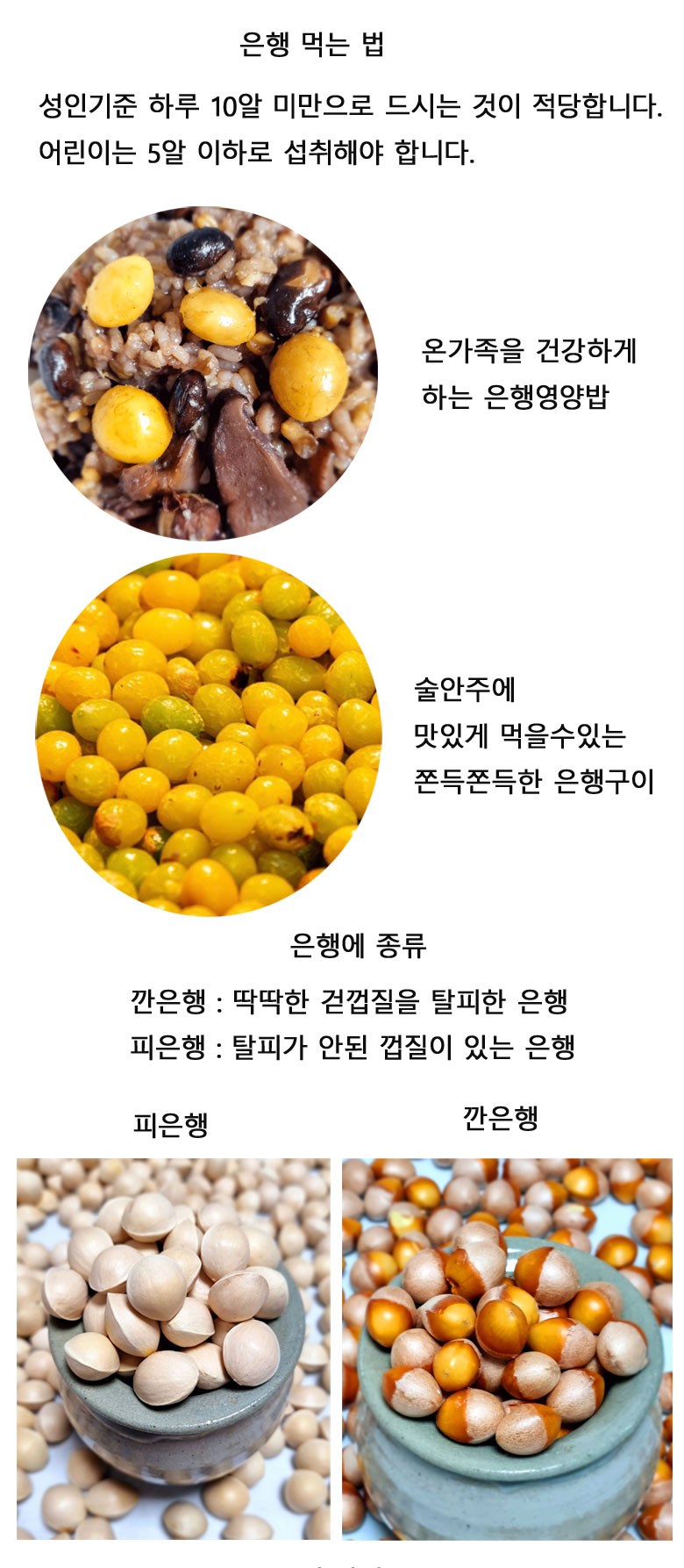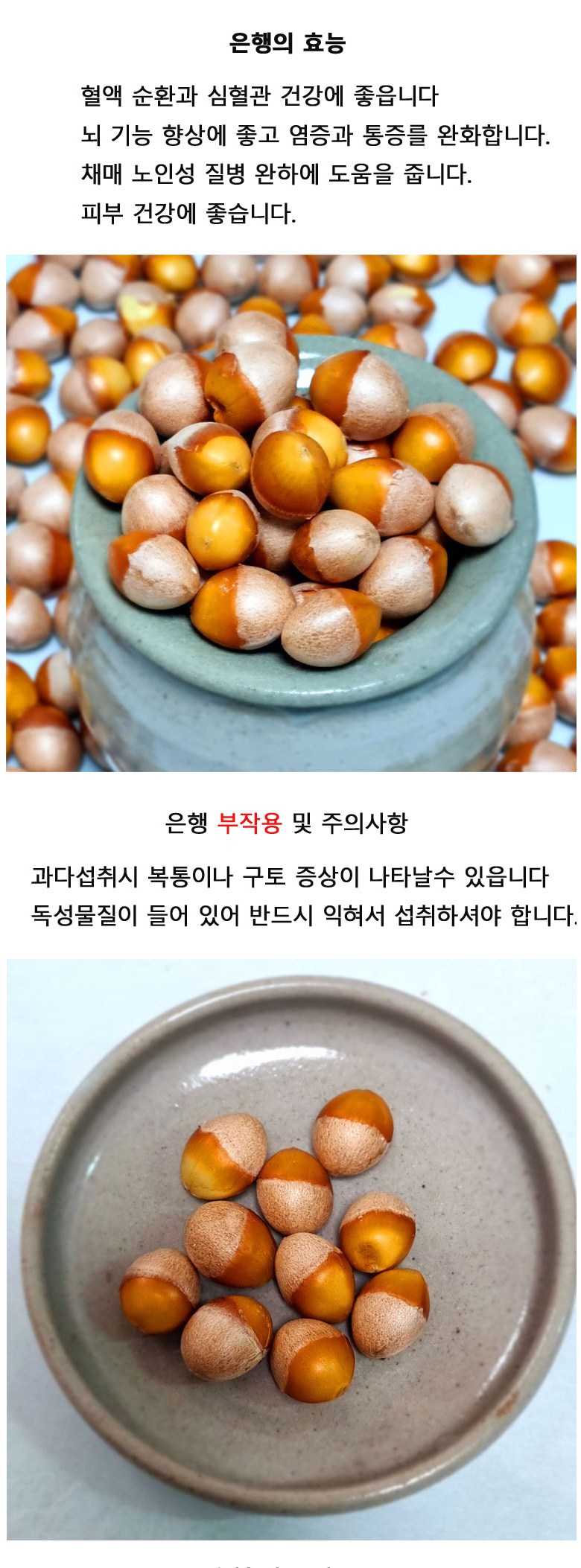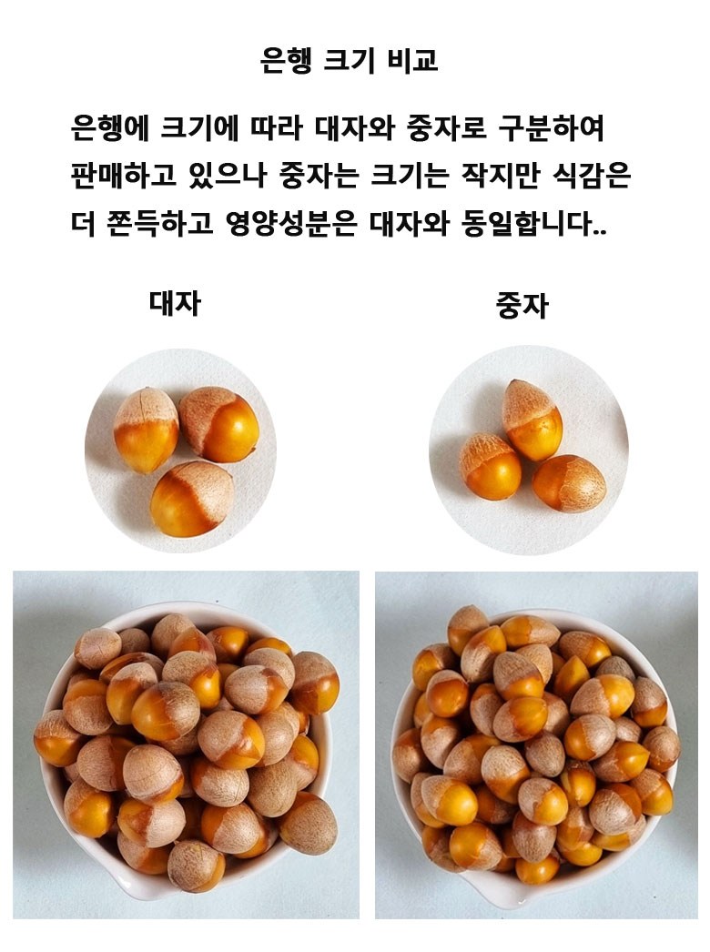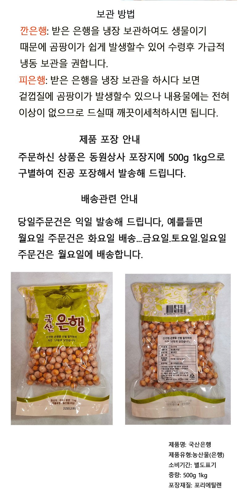 | 품목 또는 명칭 | 은행 | 포장단위별 내용물의 용량(중량),수량,크기 | 500g , 1kg |