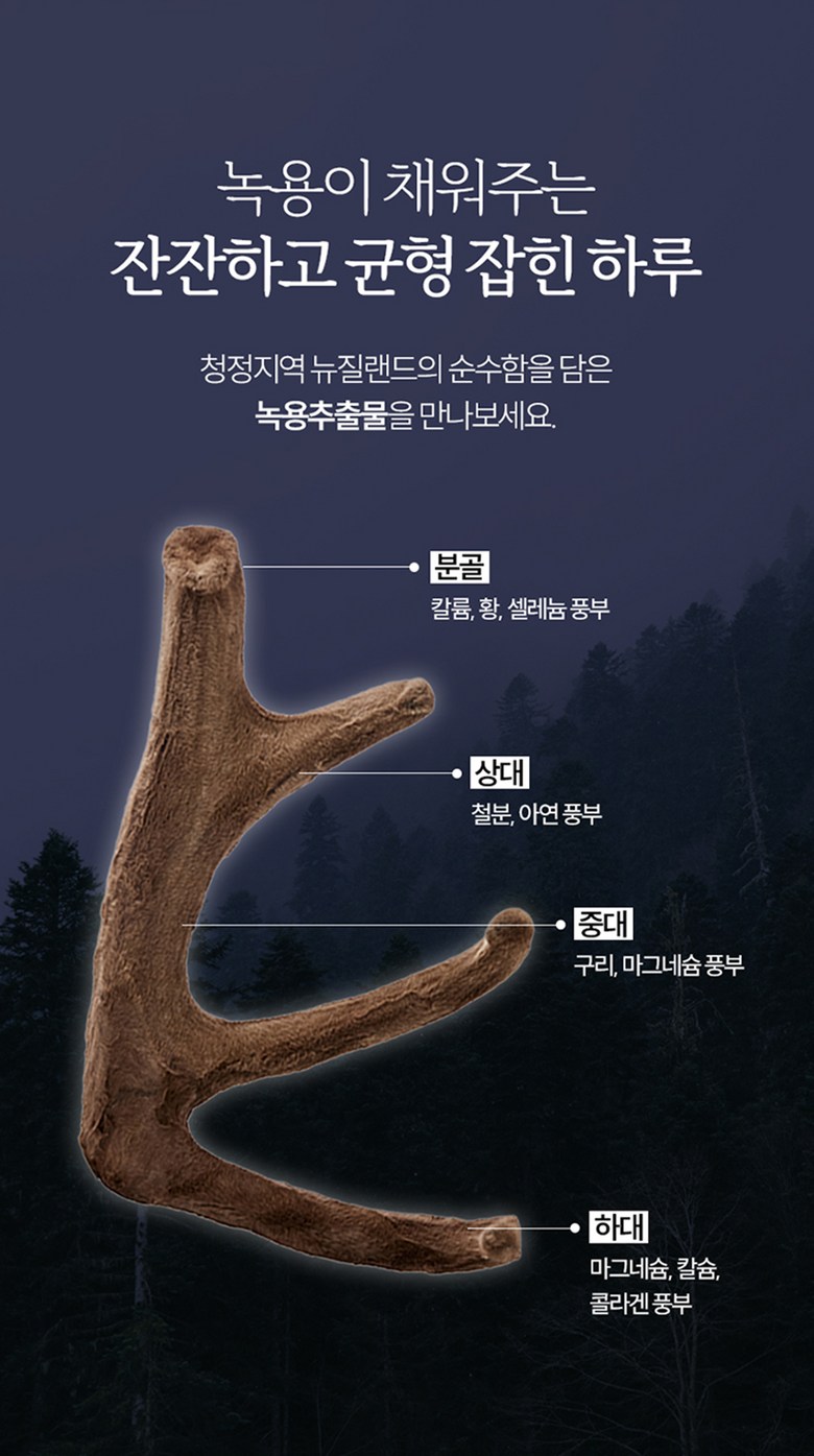 | 원재료명 및 함량 | 프락토올리고당,화이버리스트,녹용추출분말(뉴질랜드산),가바,구연산칼륨,엘빠소요거트파우더,복령분말(국산),산화마그네슘,가시오가피추출분말(국산),산화아연 | 영양성분 | - |