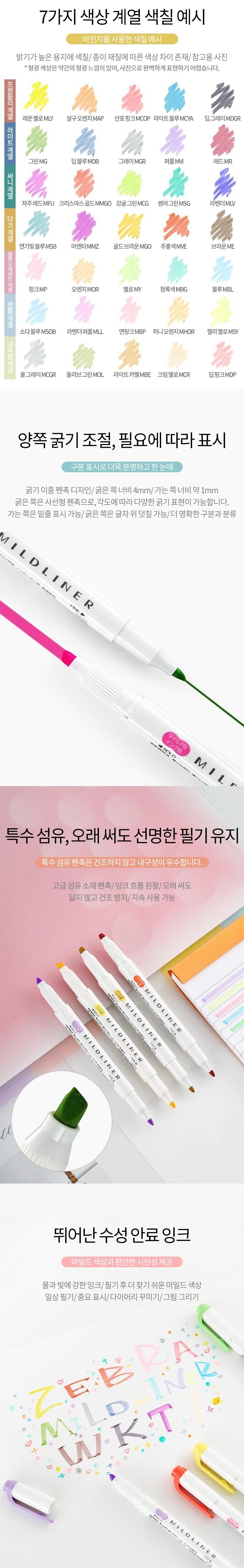 제브라 마일드 라이너 양면 형광펜 5색 세트 WKT7