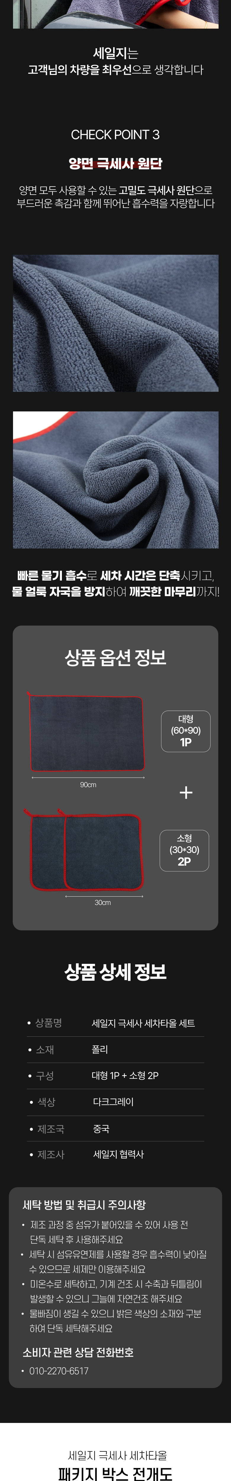 | 품명 및 모델명 | 세일지 극세사 세차타올 세트 | 인증/허가 사항 | 해당사항 없음 |