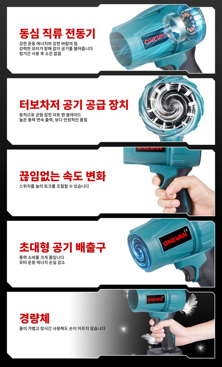 ONEVAN 초강력 휴대용 송풍기 터보 제트 블로워