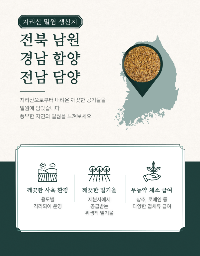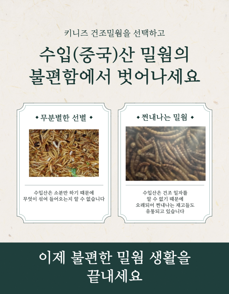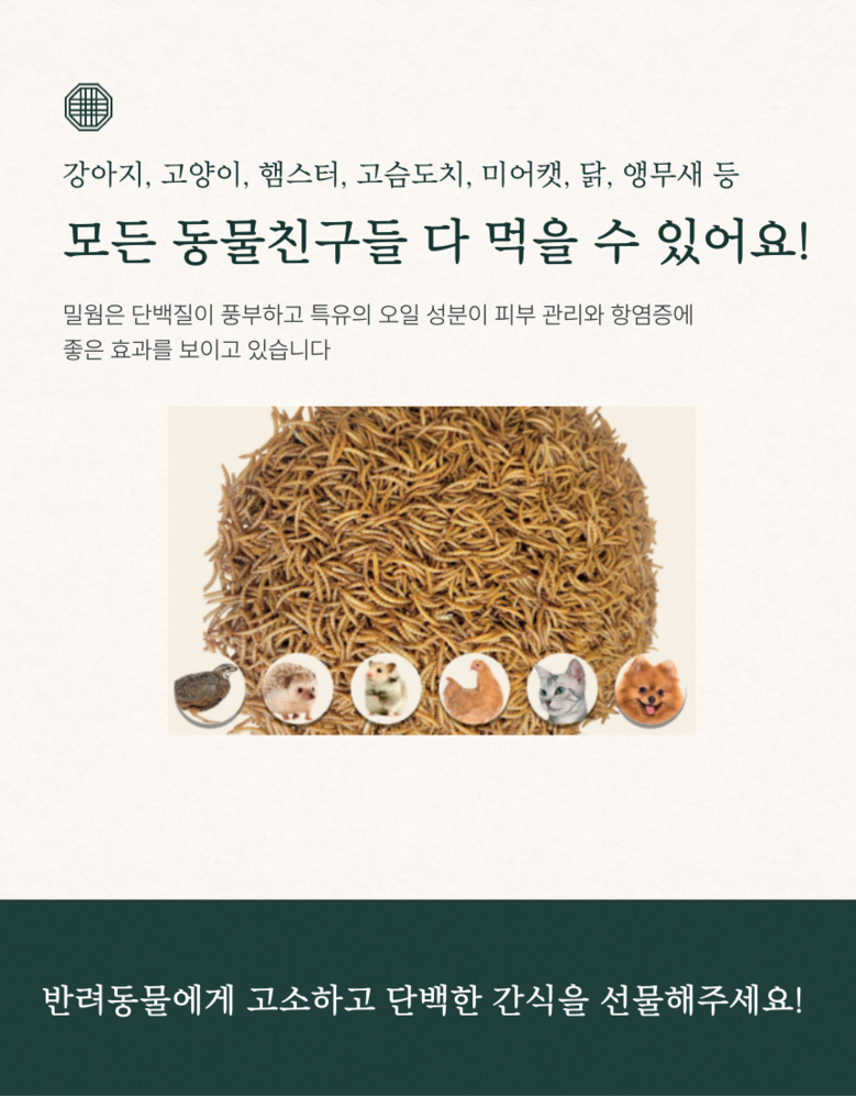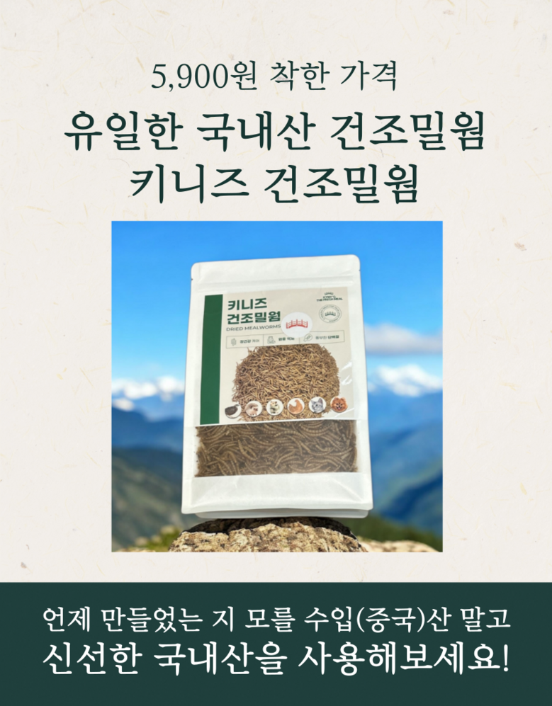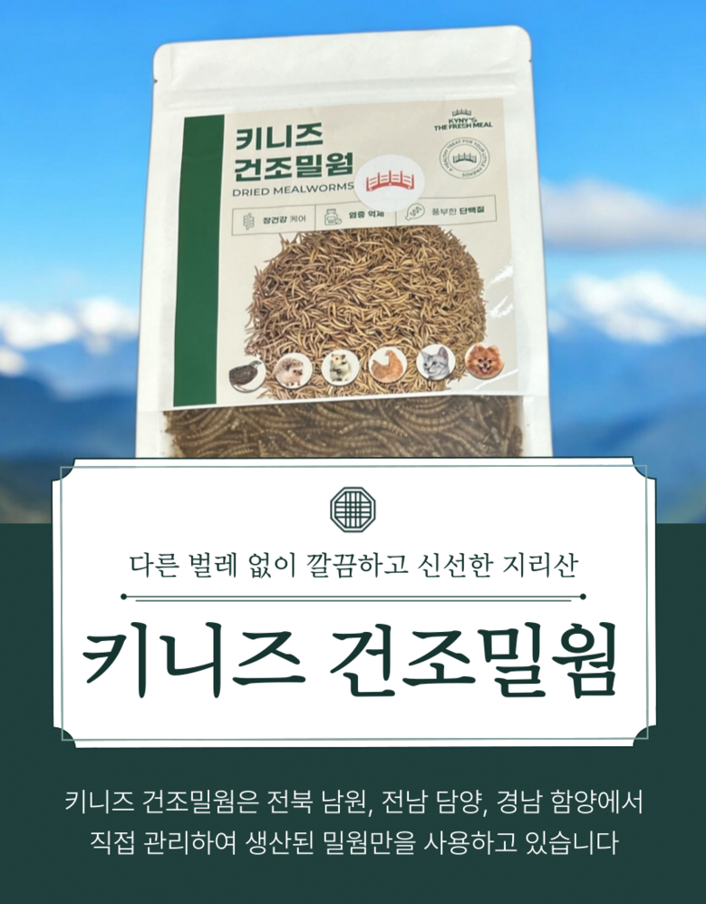 키니즈 국내산 지리산 건조밀웜 고슴도치 햄스터 새 토끼 강아지 고양이 간식 사료토핑
