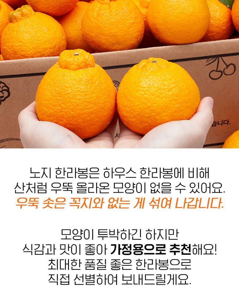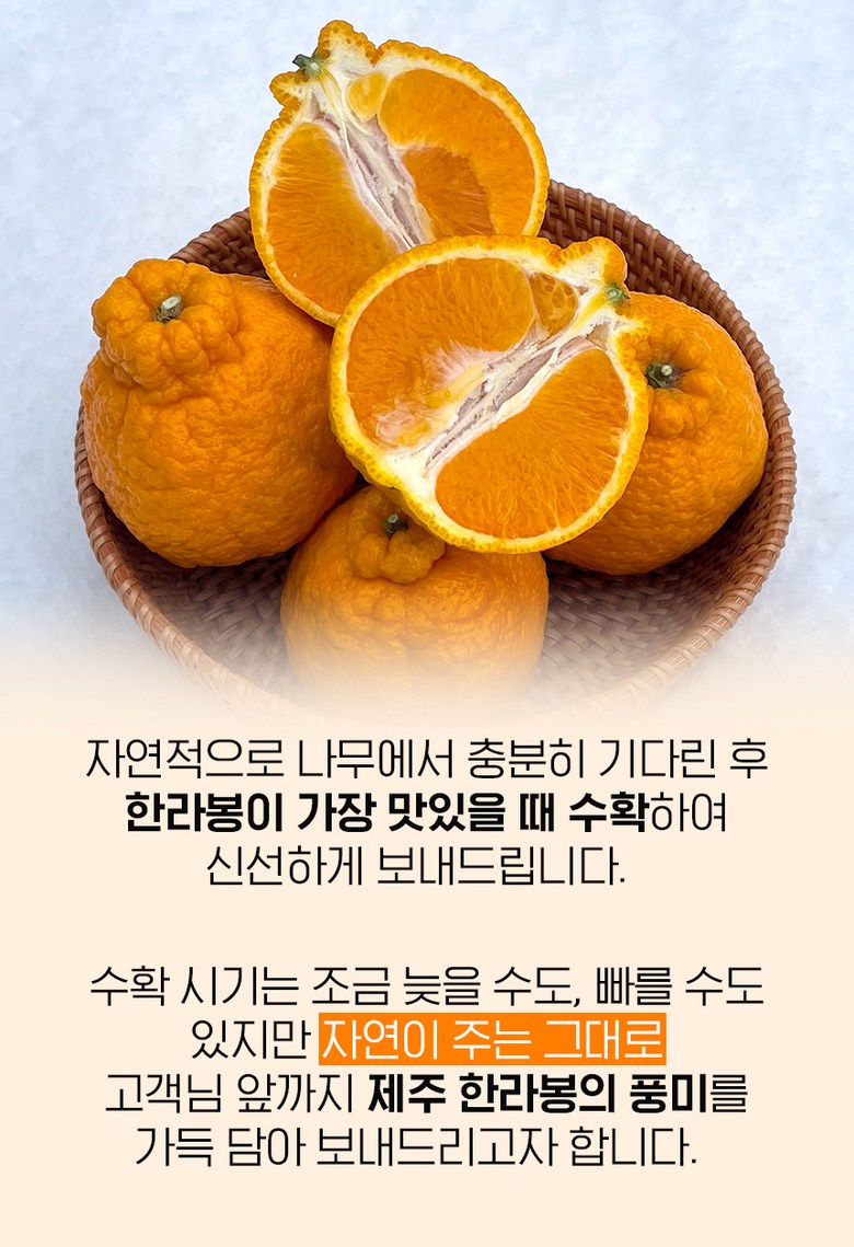 사이즈 선별 비용을 줄여 동일한 한라봉을 더 합리적인 가격에 만나보실 수 있습니다.