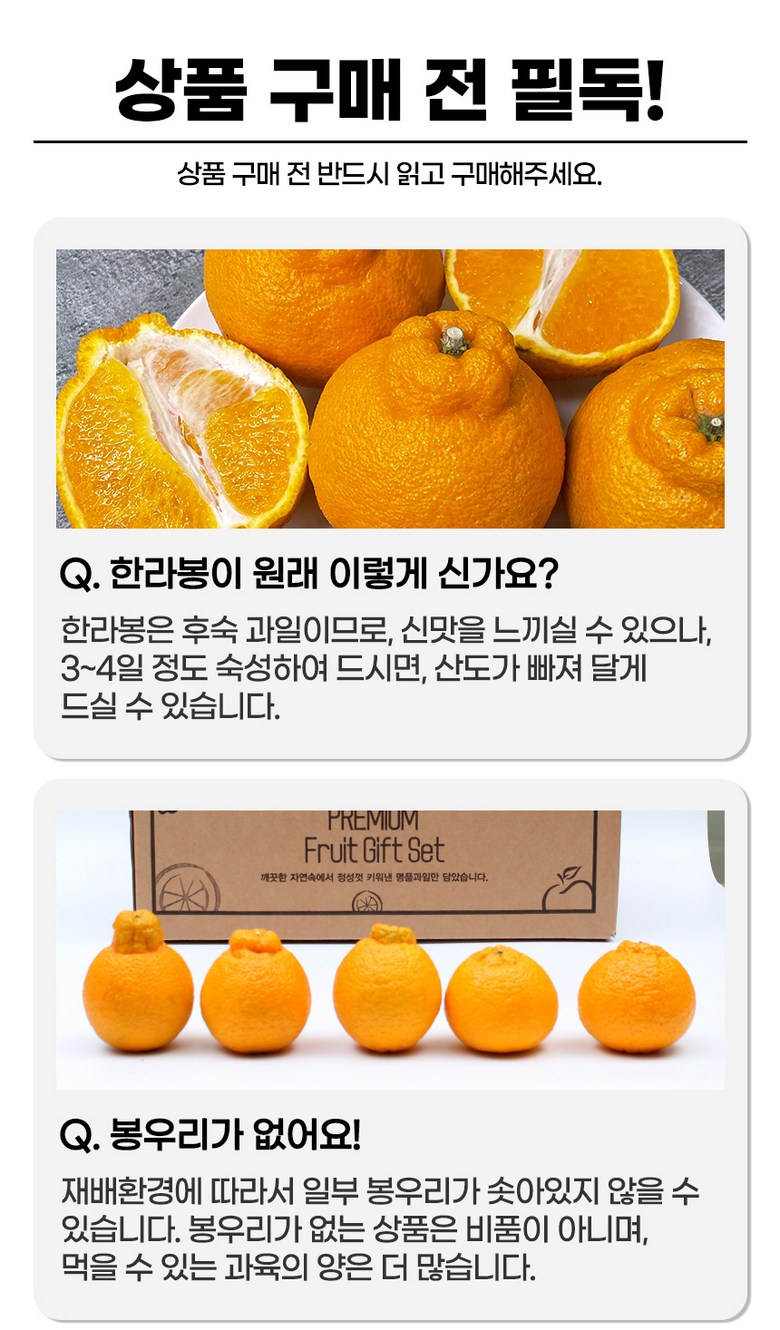 | 생산자(수입자) | 농업회사법인(주)이웃사촌 | 원산지 | 국내산(제주) |
