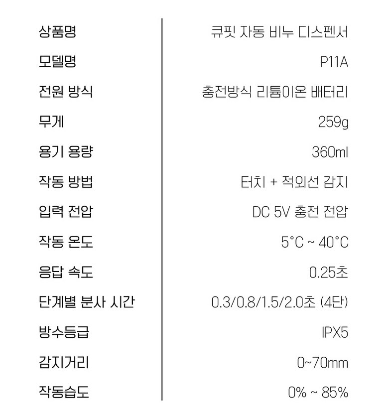 | 품명 및 모델명 | P11 | KC 인증정보 | 안전인증번호 : YU10903-18001A |