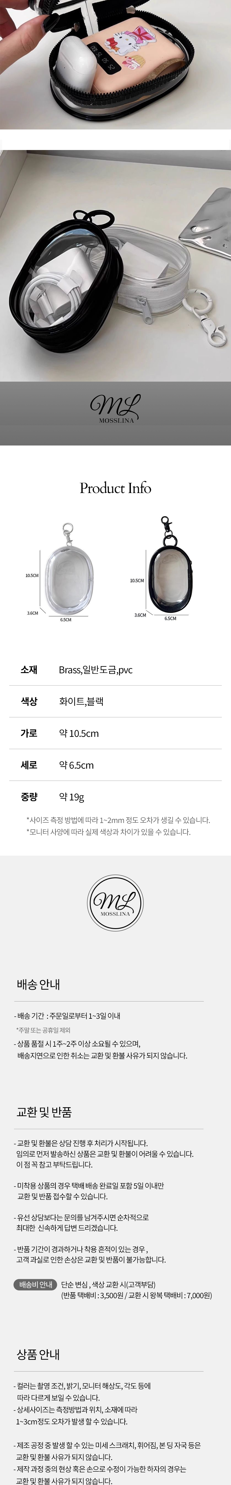 모스리나 투명 PVC 지퍼 키링 파우치 2pcs