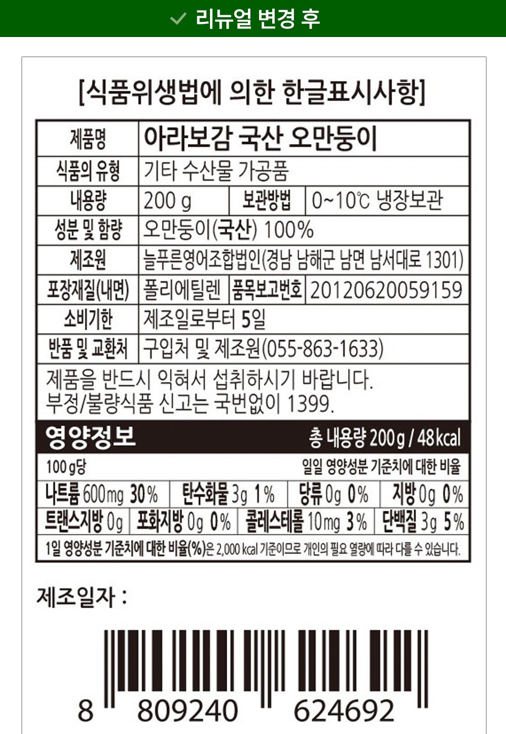- 보관방법: 냉장보관