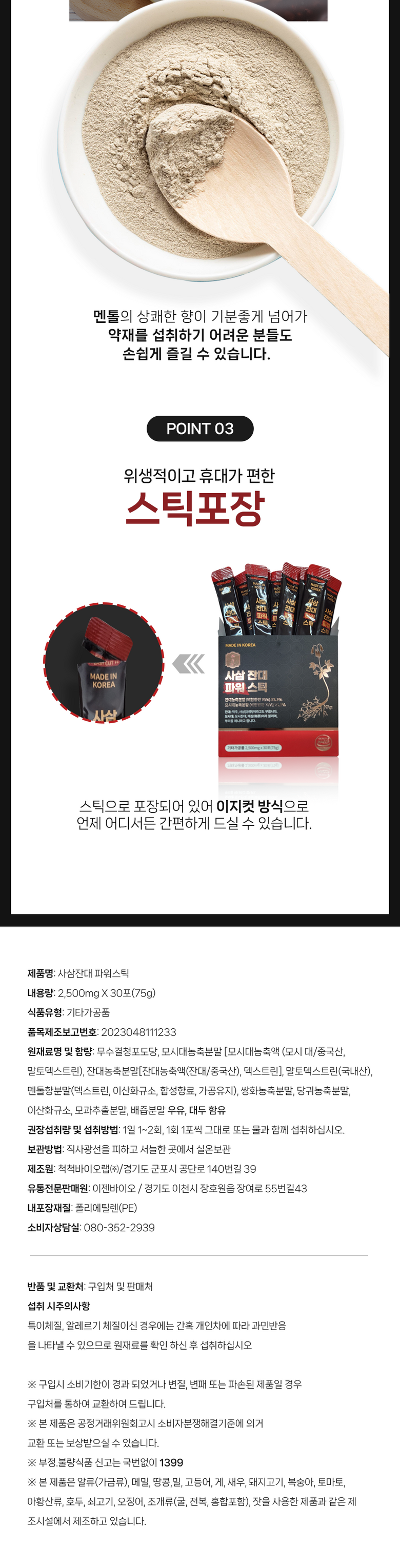 | 포장단위별 내용물의 용량(중량), 수량 | 상품 상세페이지 참조 | 원재료명 및 함량 | 상품 상세페이지 참조 |