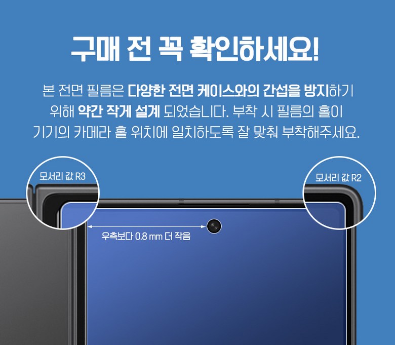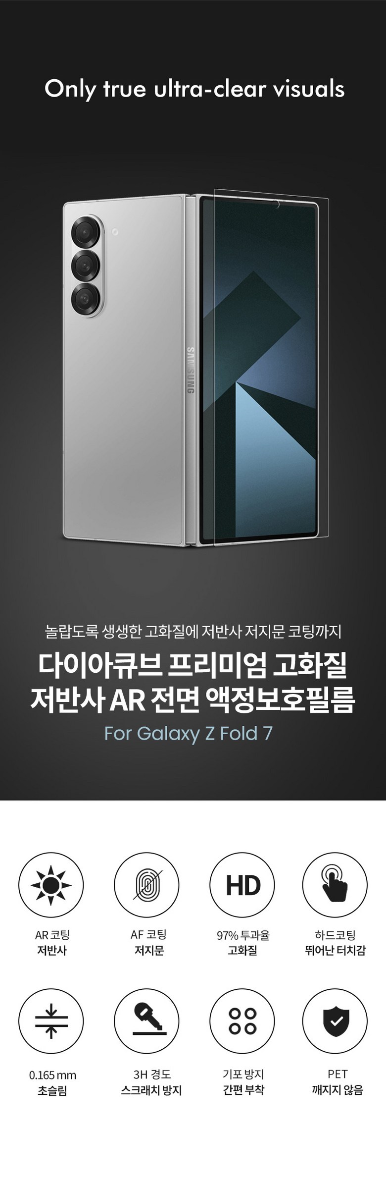 | 품명 및 모델명 | 다이아큐브 삼성 갤럭시 Z폴드7 전면 프리미엄 AR 저반사 액정보호필름,케이스호환 2P | 인증/허가 사항 | 본품 : 해당 없음 / 알코올솜패드 : 안전기준 적합확인 신고번호: 제 HB20-02-0189호(한국환경산업기술원) |