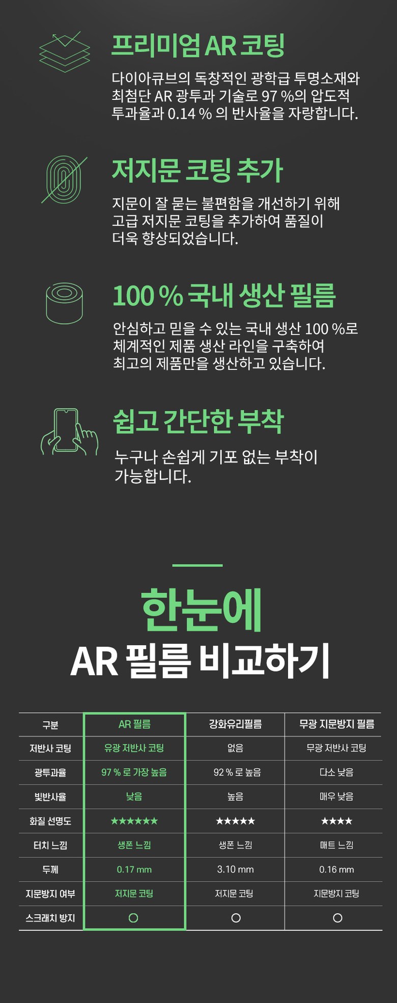 - 지문방지 여부: 저지문 기능