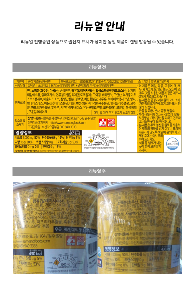 - 컵라면 용기 크기: 보통/큰컵 (81g 이상)