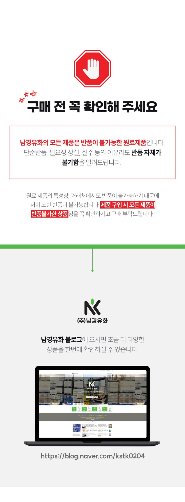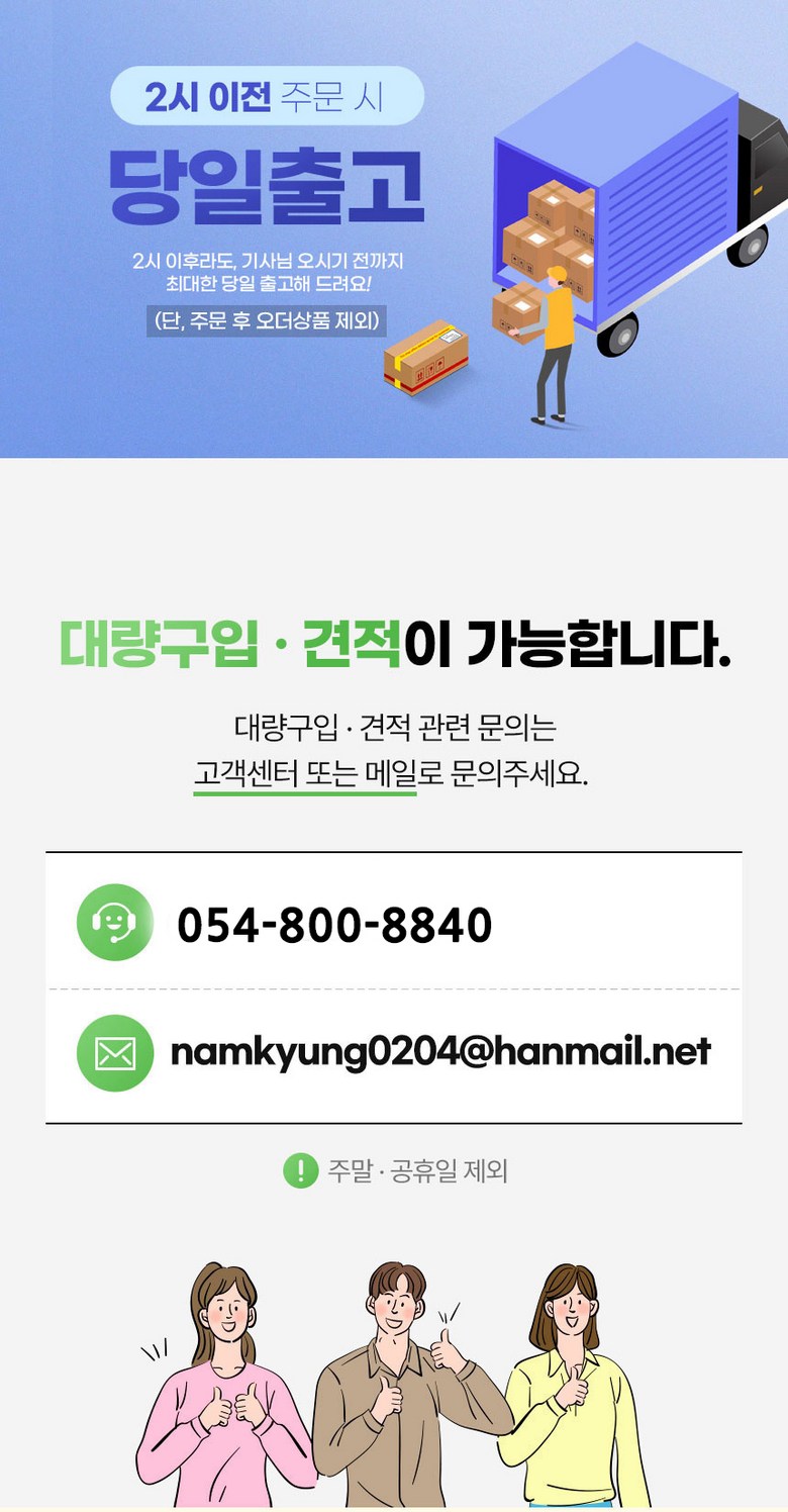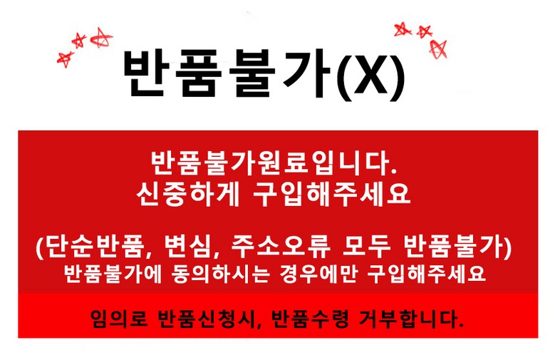- ㆍ모니터 해상도의 차이로 인해 색상이나 이미지가 실제와 달라, 고객이 단순 변심으로 교환/반품을 무료로 요청하는 경우
