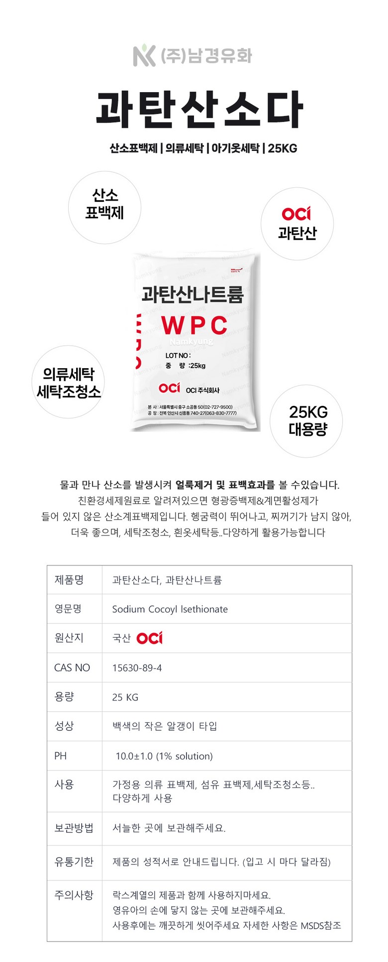 | 제조국(원산지) | 국산 OCI | 제조자(수입자) | 상품 상세페이지 참조 |