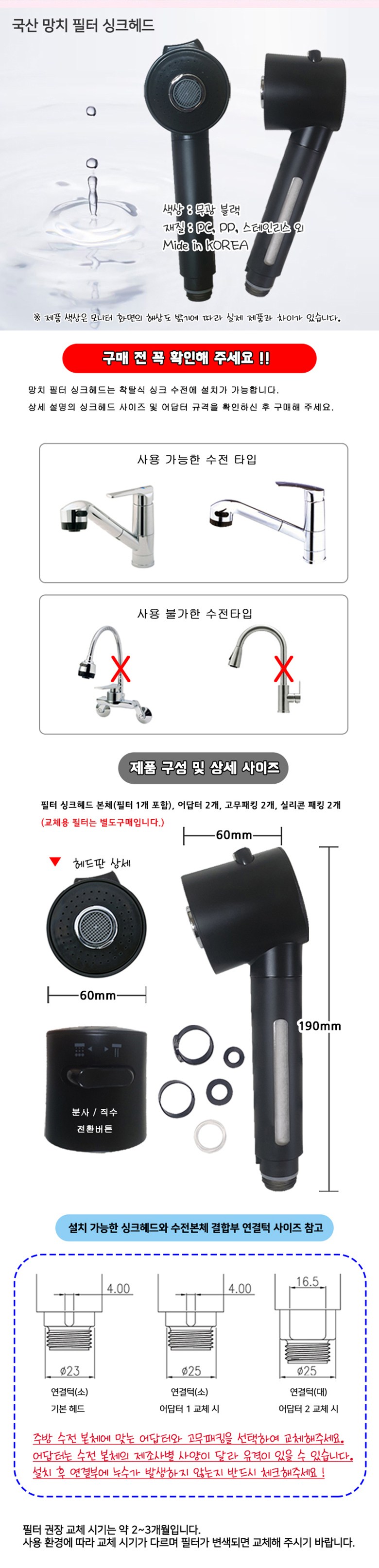 | 품명 및 모델명 | 망치 필터 싱크헤드 / YCKHF-3 | 인증/허가 사항 | KCW-2017-0156 |