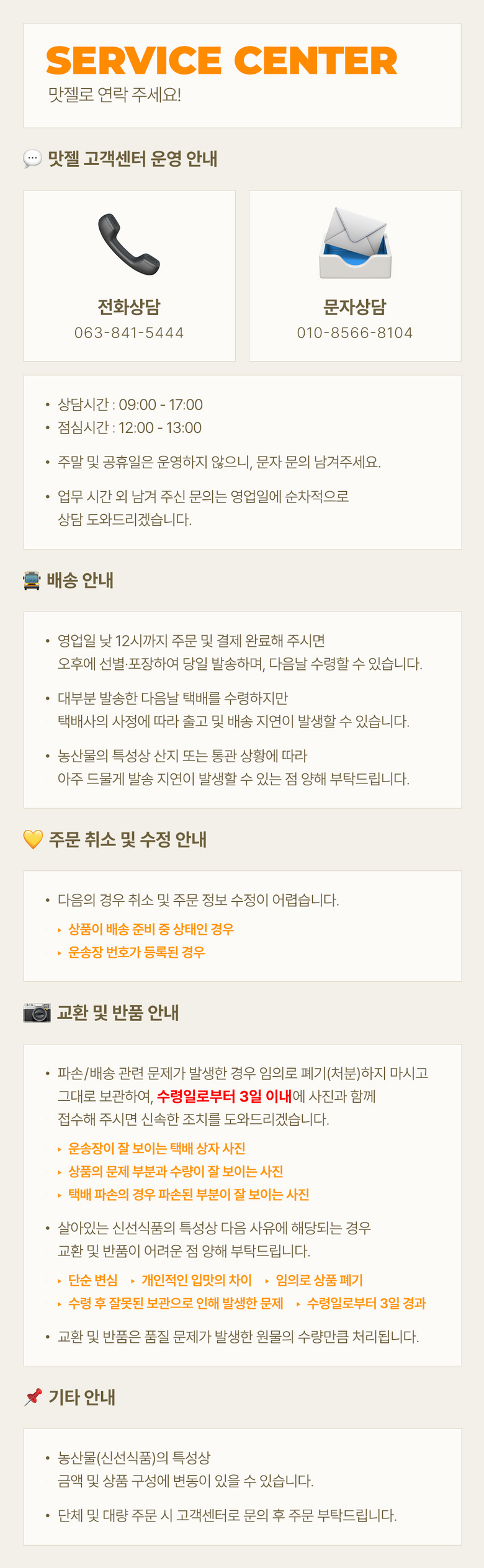 - 상품문의 및 후기게시판을 통해 취소나 환불, 반품 등은 처리되지 않습니다.