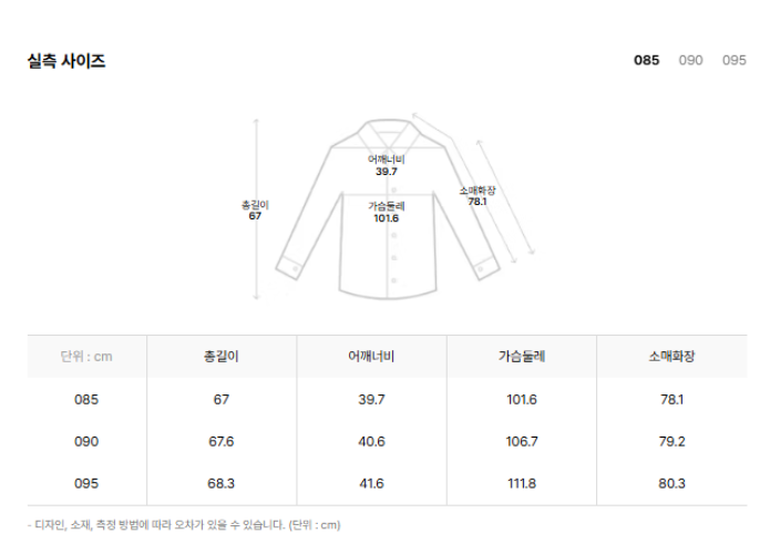 - 상의 사이즈: 여성 85