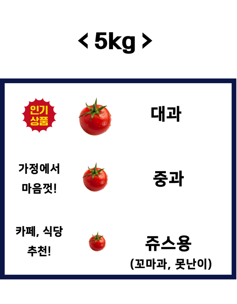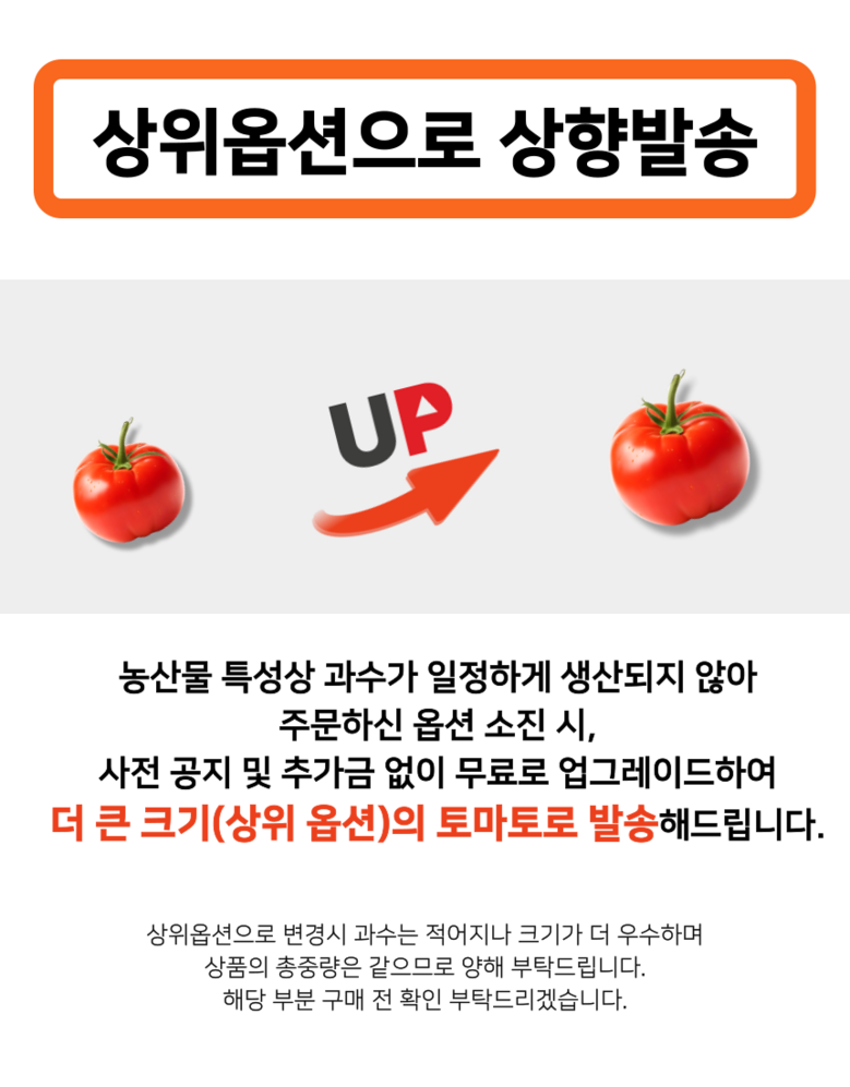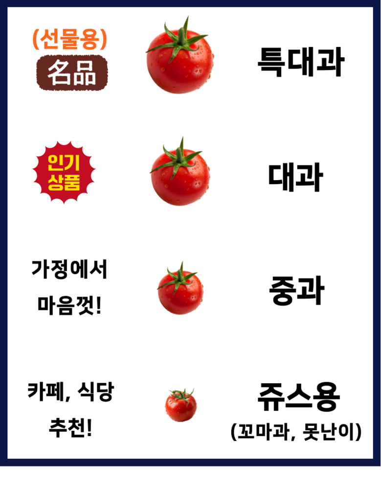 | 품목 또는 명칭 | 토마토 | 포장단위별 내용물의 용량(중량),수량,크기 | 상품 상세페이지 참조 |