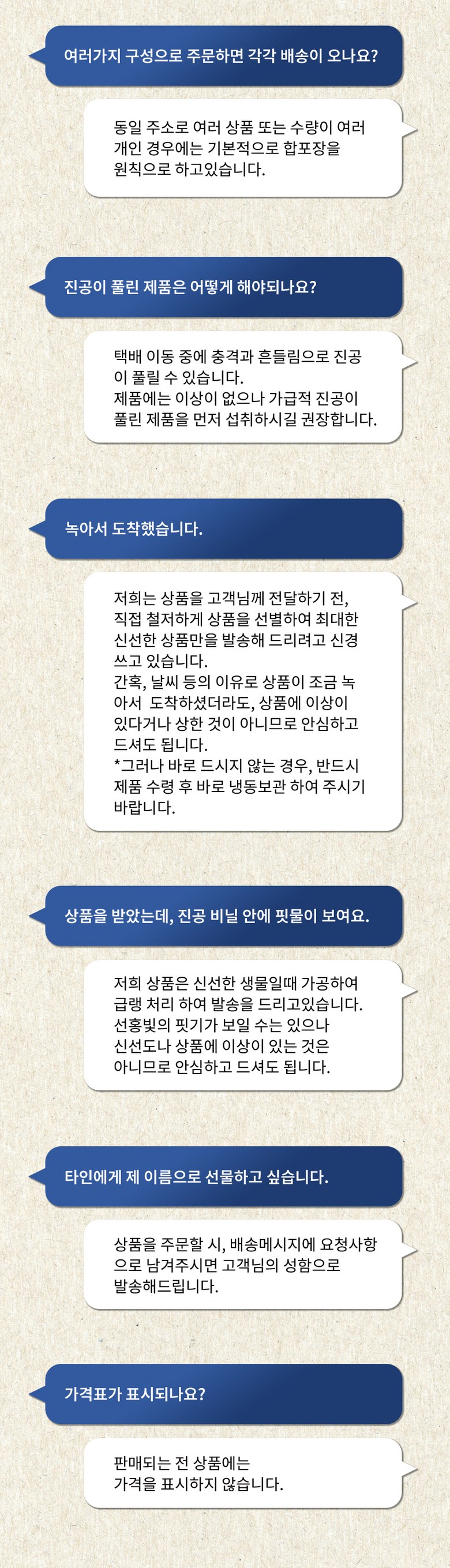 - 상품문의 및 후기게시판을 통해 취소나 환불, 반품 등은 처리되지 않습니다.