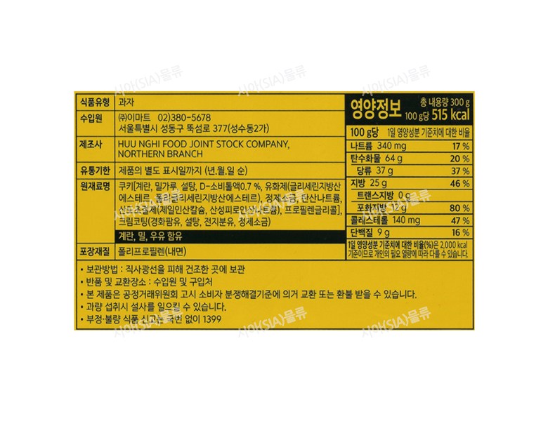 | 제품명 | 에그크림쿠키 | 식품의 유형 | 과자 |