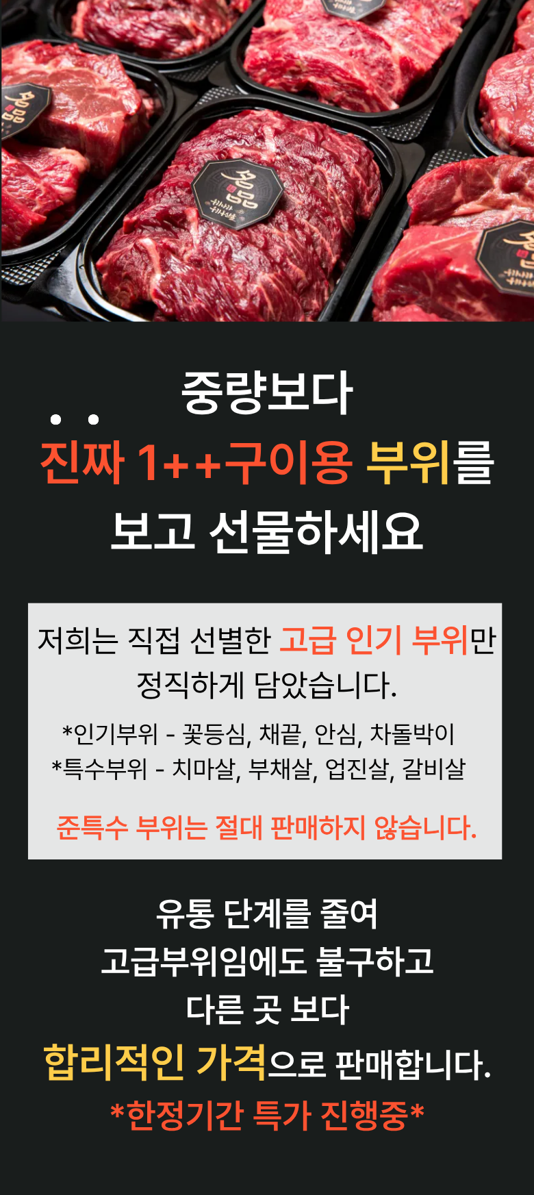 | 생산자(수입자) | 상품 상세페이지 참조 | 원산지 | 국내산 1++ 한우 |