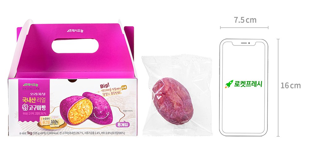 마치 밭에서 방금 캐온 듯한 모습의 고구마빵이에요. 겉은 쫀득하고 속은 포슬포슬한 식감이 돋보이는데요. 한입 먹어보면, 입안 가득 퍼지는 달콤하면서도 고소한 풍미가 일품이랍니다. 우유, 커피 등과 함께 촉촉하게 즐겨보세요.