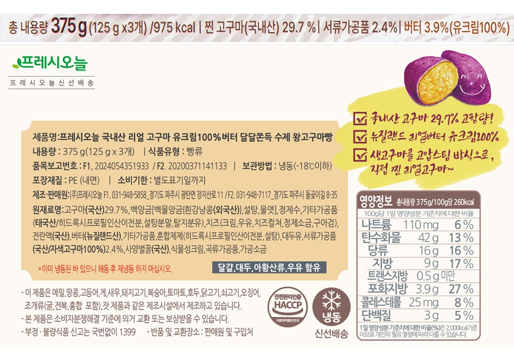 | 생산자 및 소재지 | 컨텐츠 참조 | 제조연월일, 소비기한 또는 품질유지기한 | 소비기한(또는 유통기한) : 2026년 09월 21일 이거나 그 이후인 상품 제조년월일 : 2025년 09월 22일 이후인 제조상품 |