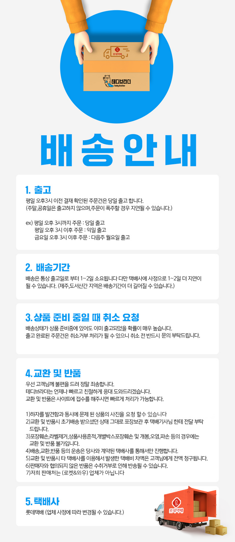 - ㆍ교환/반품에 관한 일반적인 사항은 판매자가 제시사항보다 관계법령이 우선합니다.