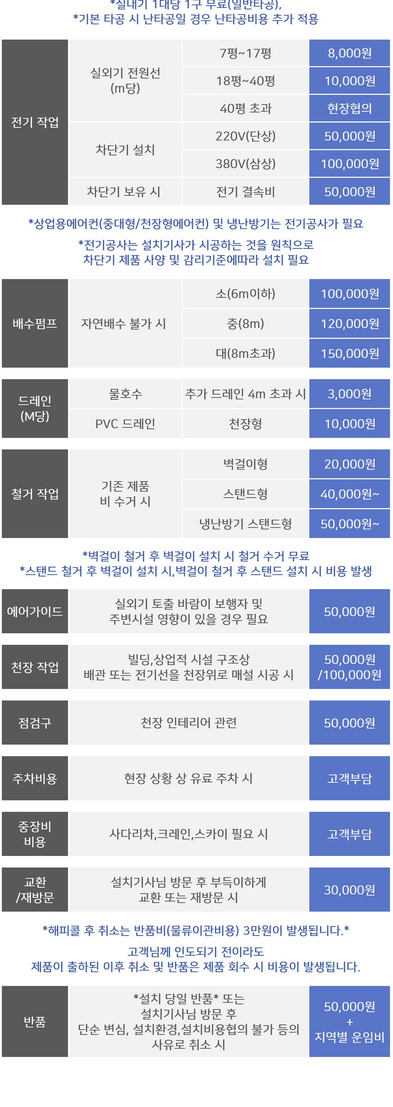 - ㆍ제조사의 사정 (신모델 출시 등) 및 부품 가격 변동 등에 의해 무료 교환/반품으로 요청하는 경우