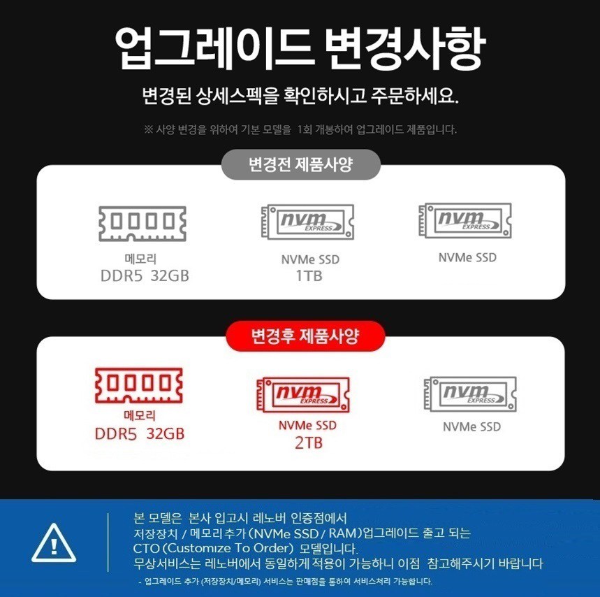 - ㆍ제조사의 사정 (신모델 출시 등) 및 부품 가격 변동 등에 의해 무료 교환/반품으로 요청하는 경우