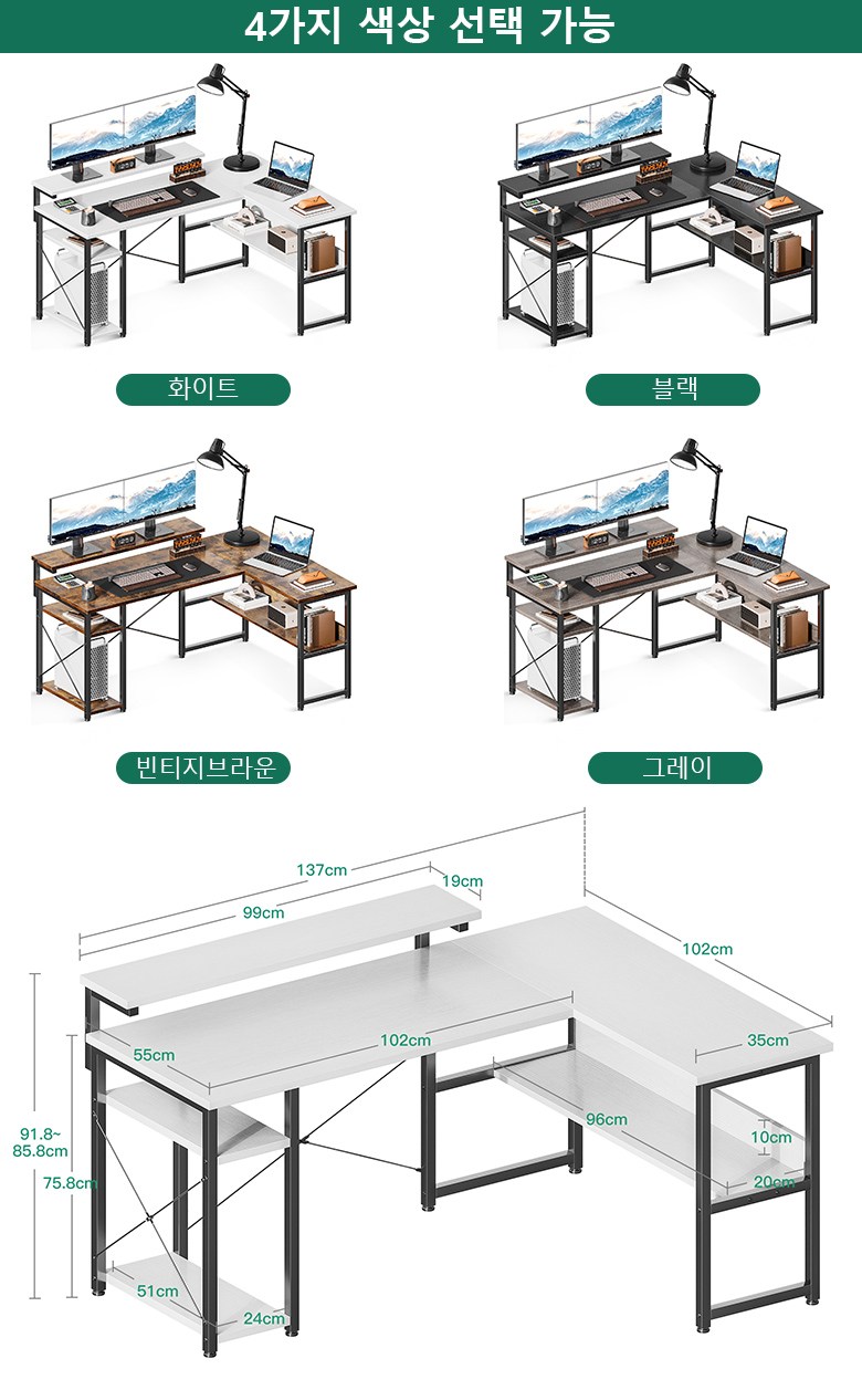 | 색상 | 빈티지브라운,화이트,블랙,그레이 | 구성품 | 제품,조립 설명서,조립용 공구 |