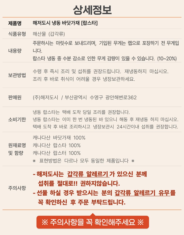 | 제조연월일, 소비기한 또는 품질유지기한 | 상품 상세페이지 참조 | 세부 품목군별 표시사항 | 상품 상세페이지 참조 |