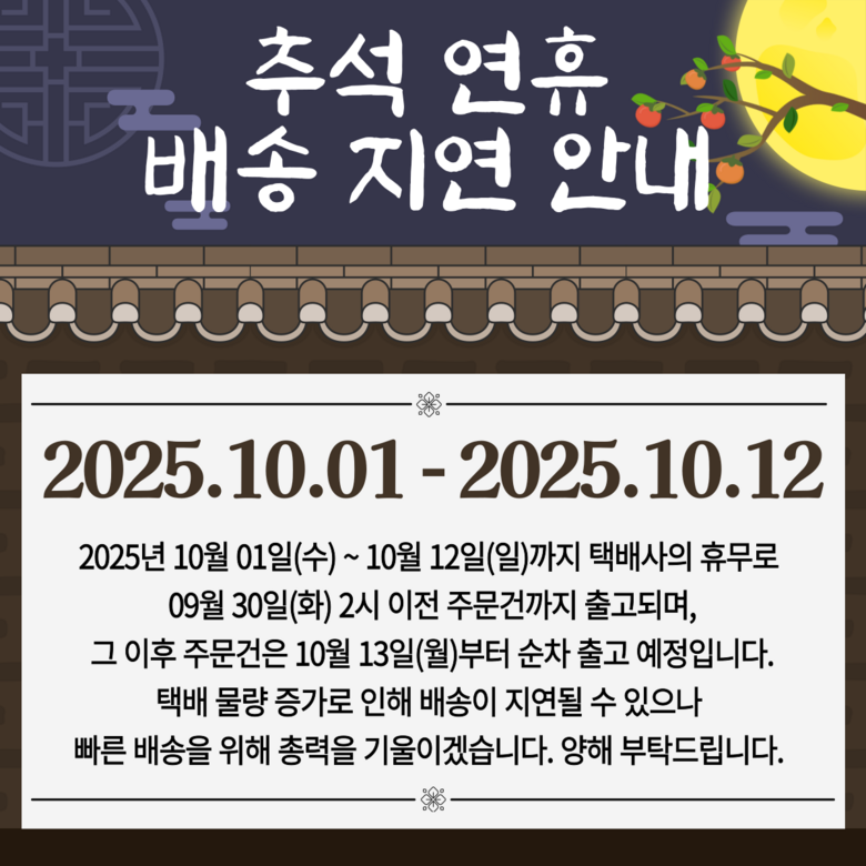 | 배송방법 | 순차배송 | 배송비 | 5,000원 - 도서산간 지역 배송불가 |