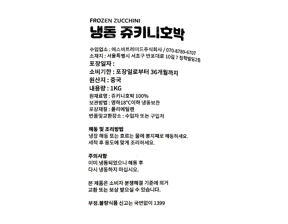 냉동 쥬키니호박