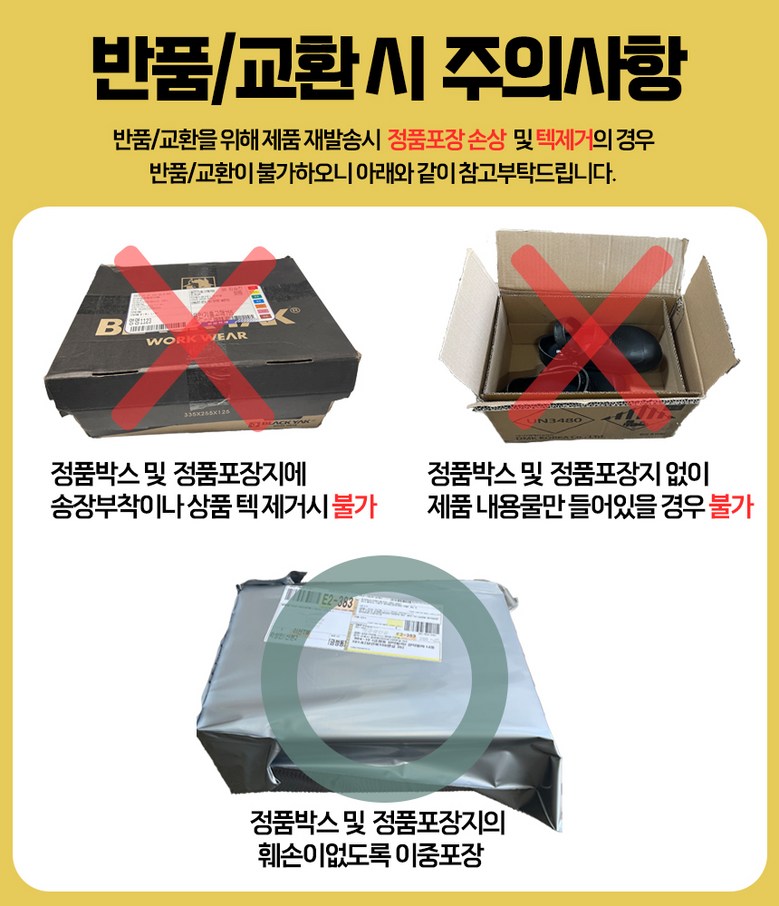- ㆍ교환/반품에 관한 일반적인 사항은 판매자가 제시사항보다 관계법령이 우선합니다.