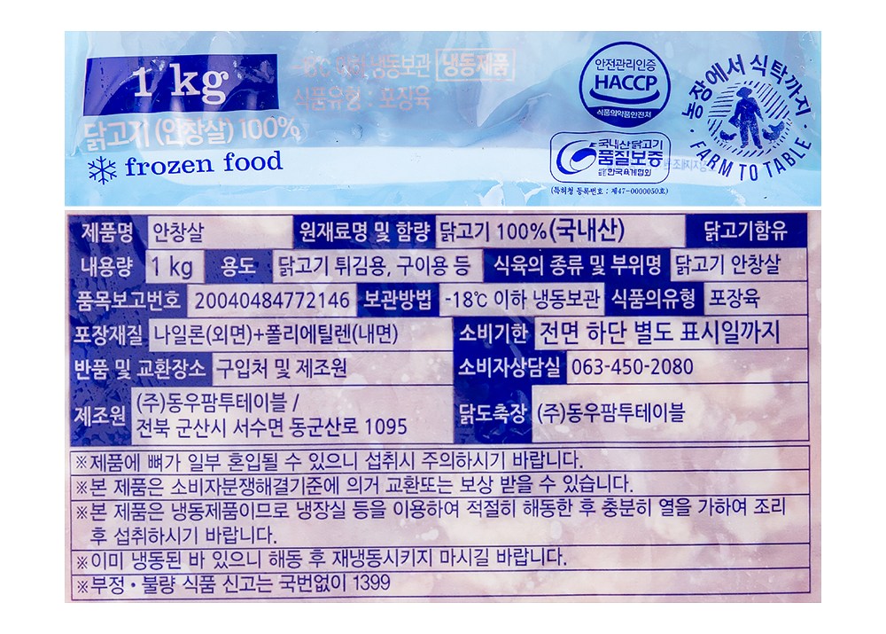 | 제조연월일, 소비기한 또는 품질유지기한 | 업데이트 예정 | 세부 품목군별 표시사항 | 축산물 등급표시 : 해당 없음 / 이력번호 표시유무 : 이력번호 표시제품임 |