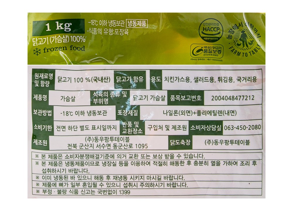 | 제조연월일, 소비기한 또는 품질유지기한 | 소비기한(또는 유통기한) : 2027년 09월 29일 이거나 그 이후인 상품 제조년월일 : 2025년 09월 30일 이후인 제조상품 | 세부 품목군별 표시사항 | 축산물 등급표시 : 해당 없음 / 이력번호 표시유무 : 이력번호 표시제품임 |