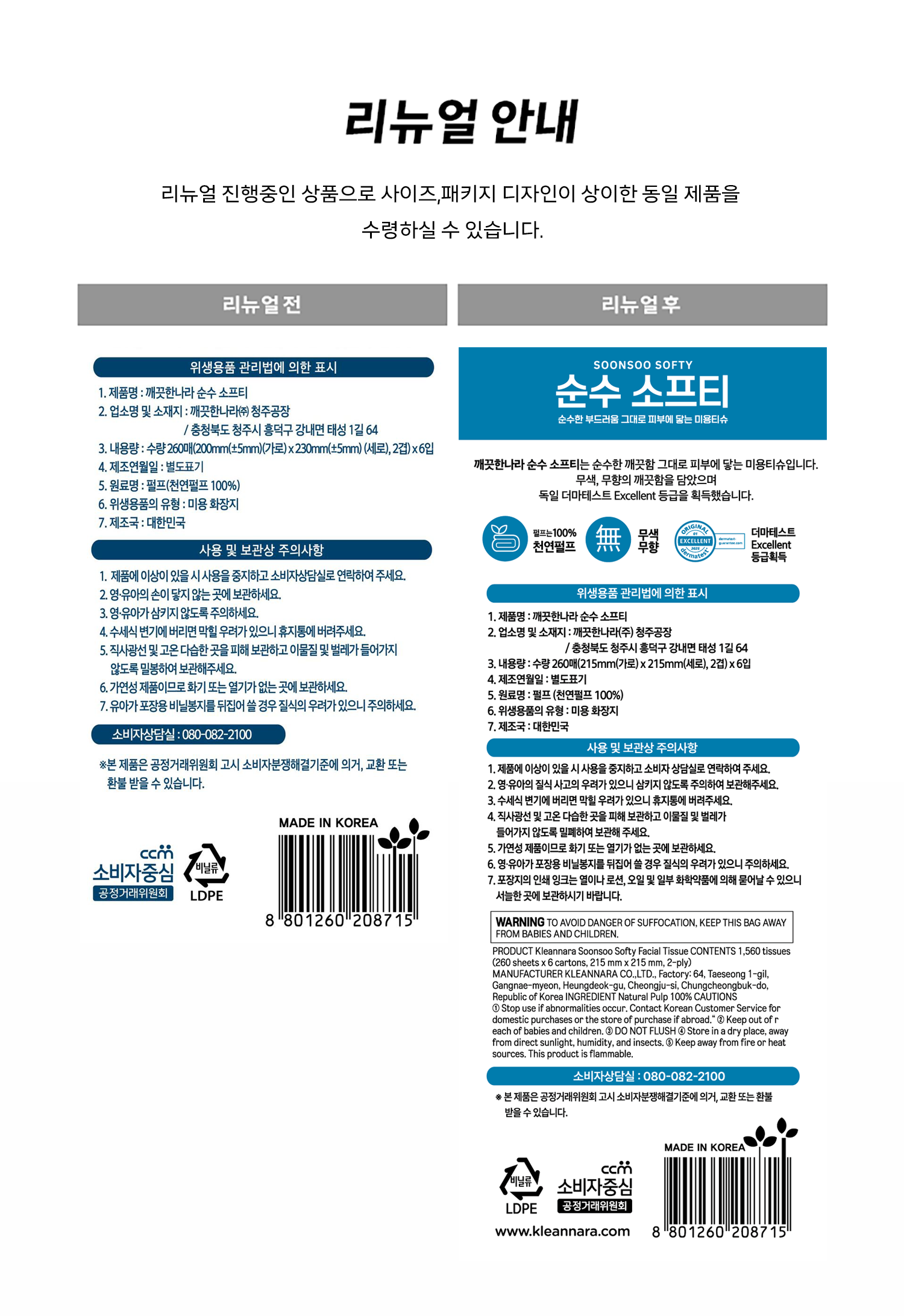 | 품명 및 모델명 | 깨끗한나라 순수 소프티 | 인증/허가 사항 | 위생용품 |