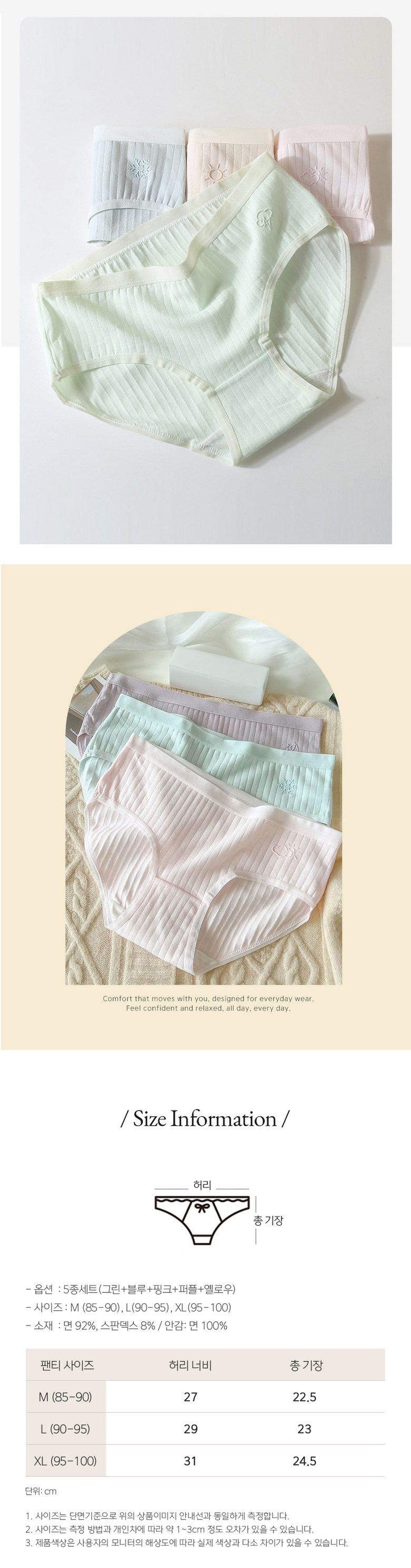 | 종류 | 여성 팬티 | 소재 | 겉감:면92%, 스판덱스8%, 안감: 면100% |