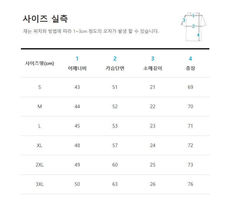 - 소매 길이: 반소매(어깨~팔꿈치 길이)