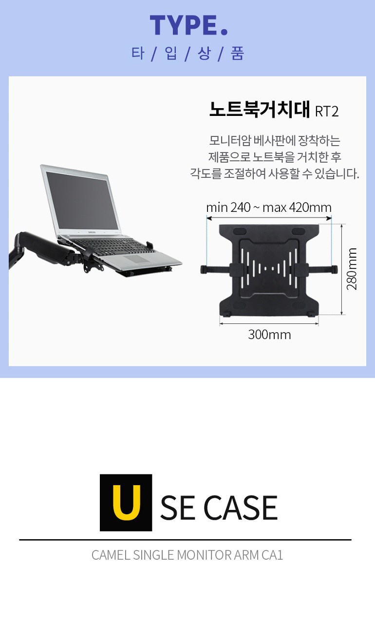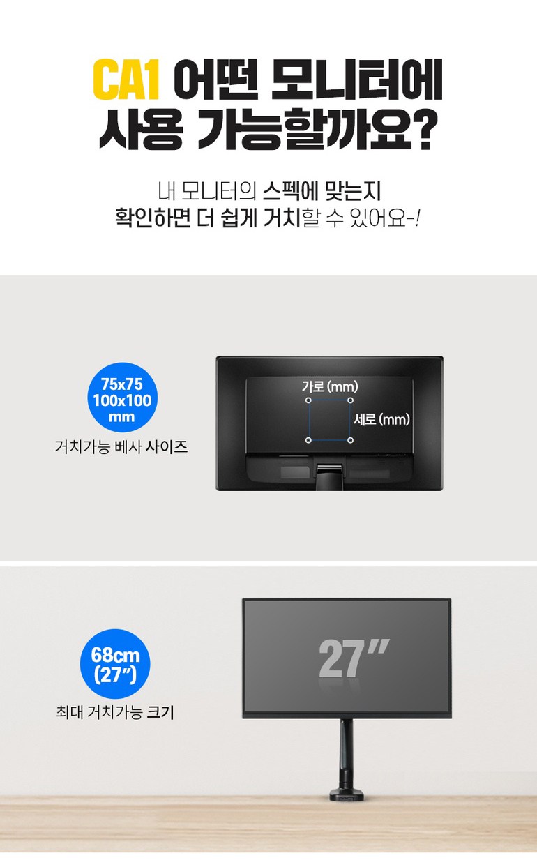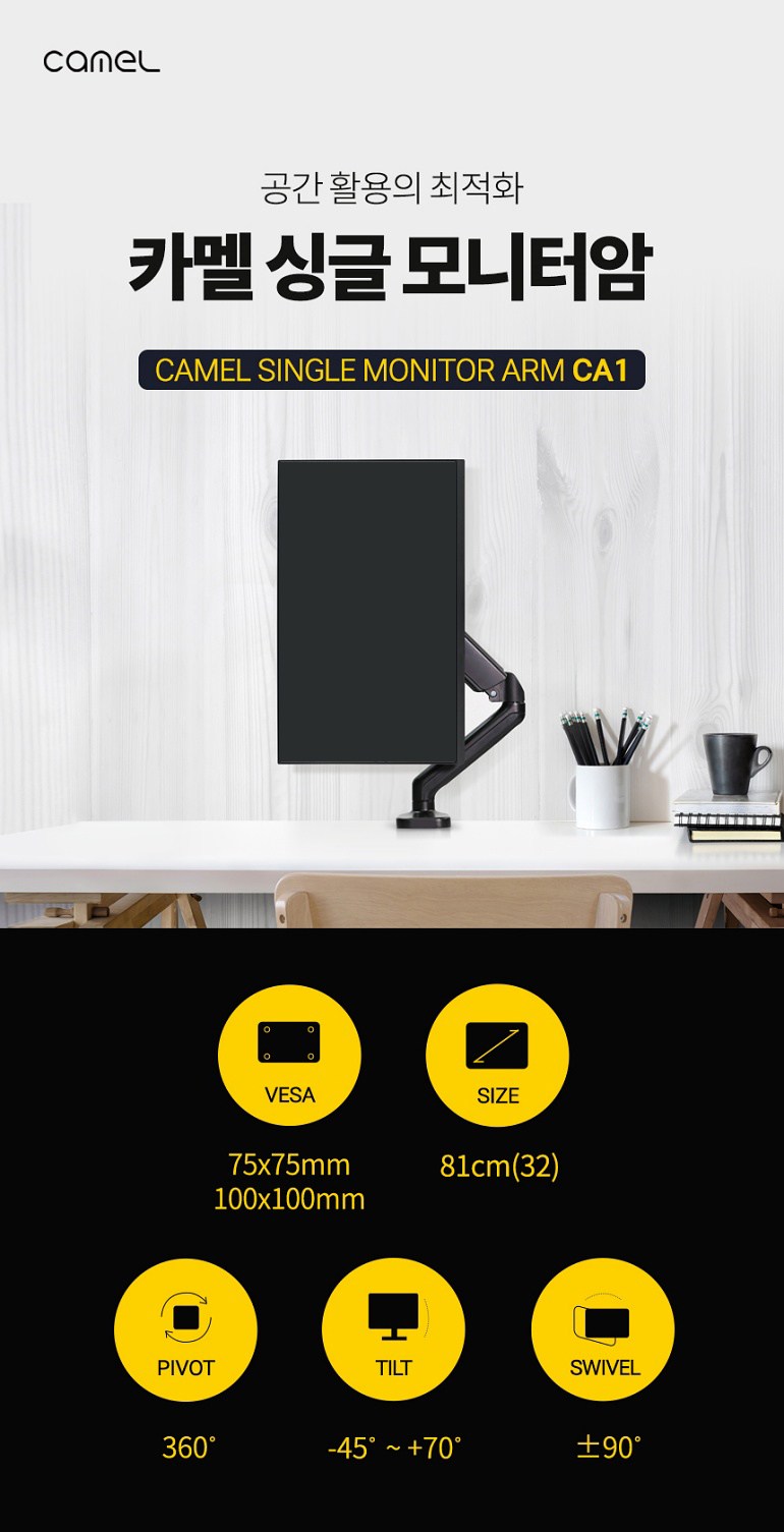 | 품명 및 모델명 | 카멜 싱글 거치대 모니터암 | 인증/허가 사항 | 해당없음 |