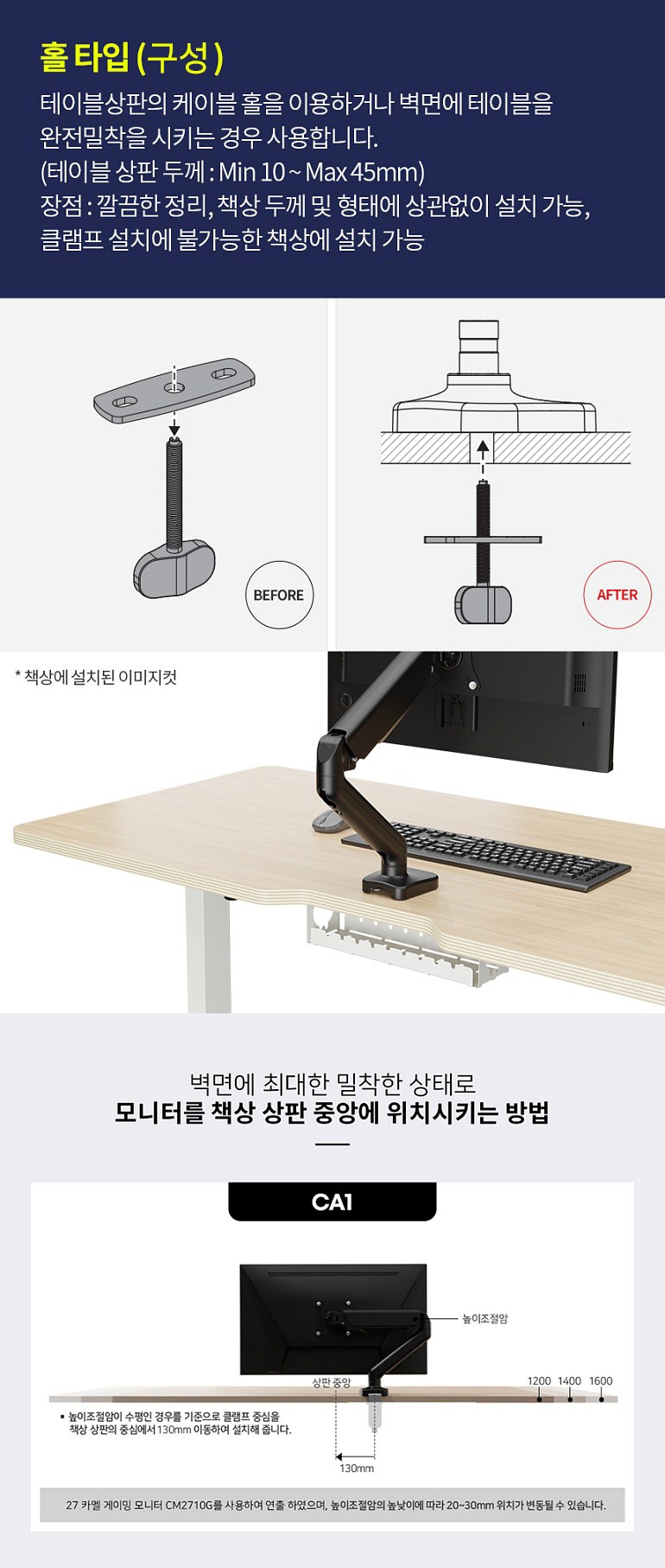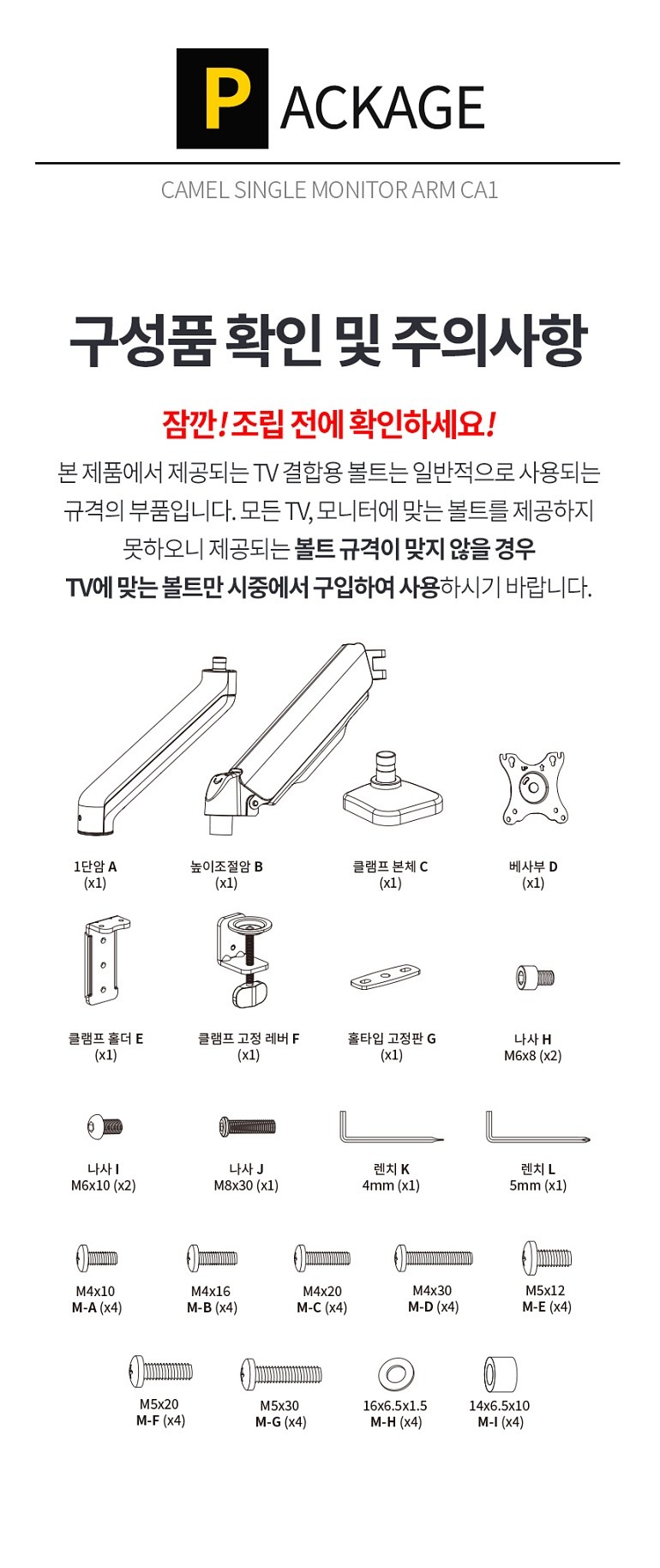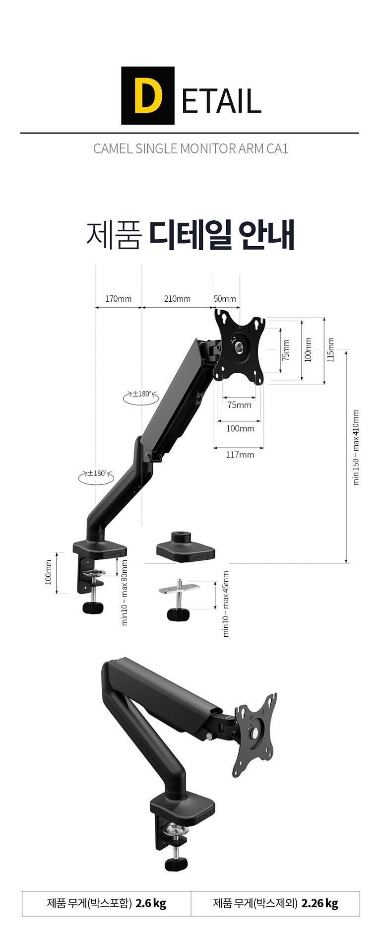 | 품명 및 모델명 | 카멜 싱글 거치대 모니터암 | 인증/허가 사항 | 해당없음 |