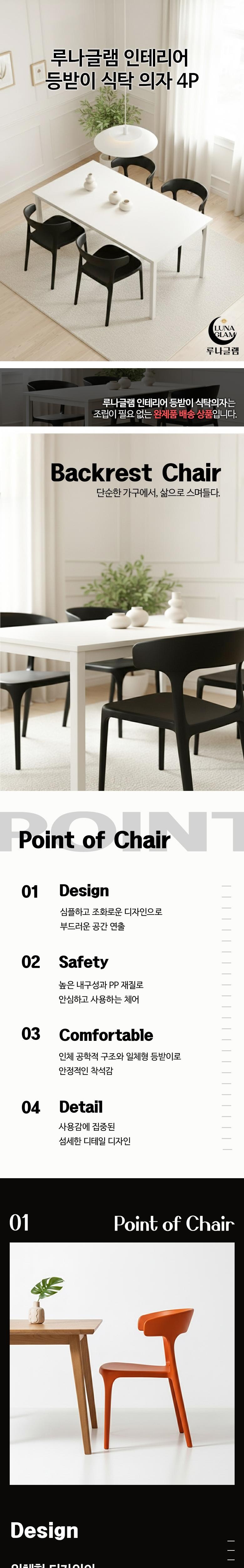 | 품명 및 모델명 | 루나글램 인테리어 일체형 등받이 식탁 의자 4P | 인증/허가 사항 | 해당사항없음 |
