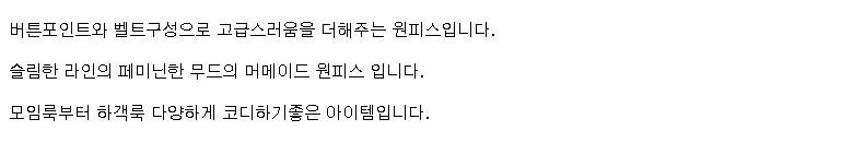 | 제조국 | 대한민국 | 세탁방법 및 취급시 주의사항 | 단독 드라이크리닝 권장 |