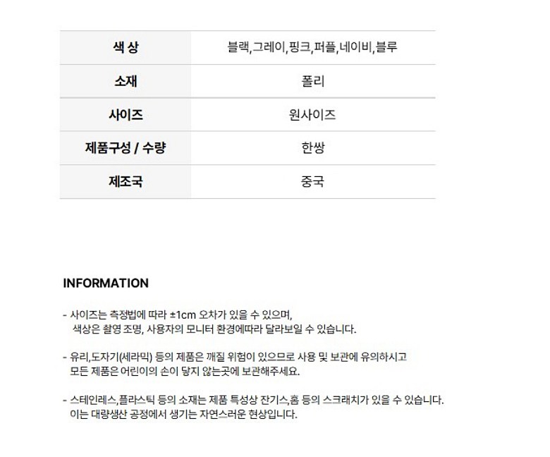 | 제조국(원산지) | 중국 | 제조자(수입자) | Yiwu Zongsheng Sleeve Covers Factory / 주식회사 하랑인터네셔널 |