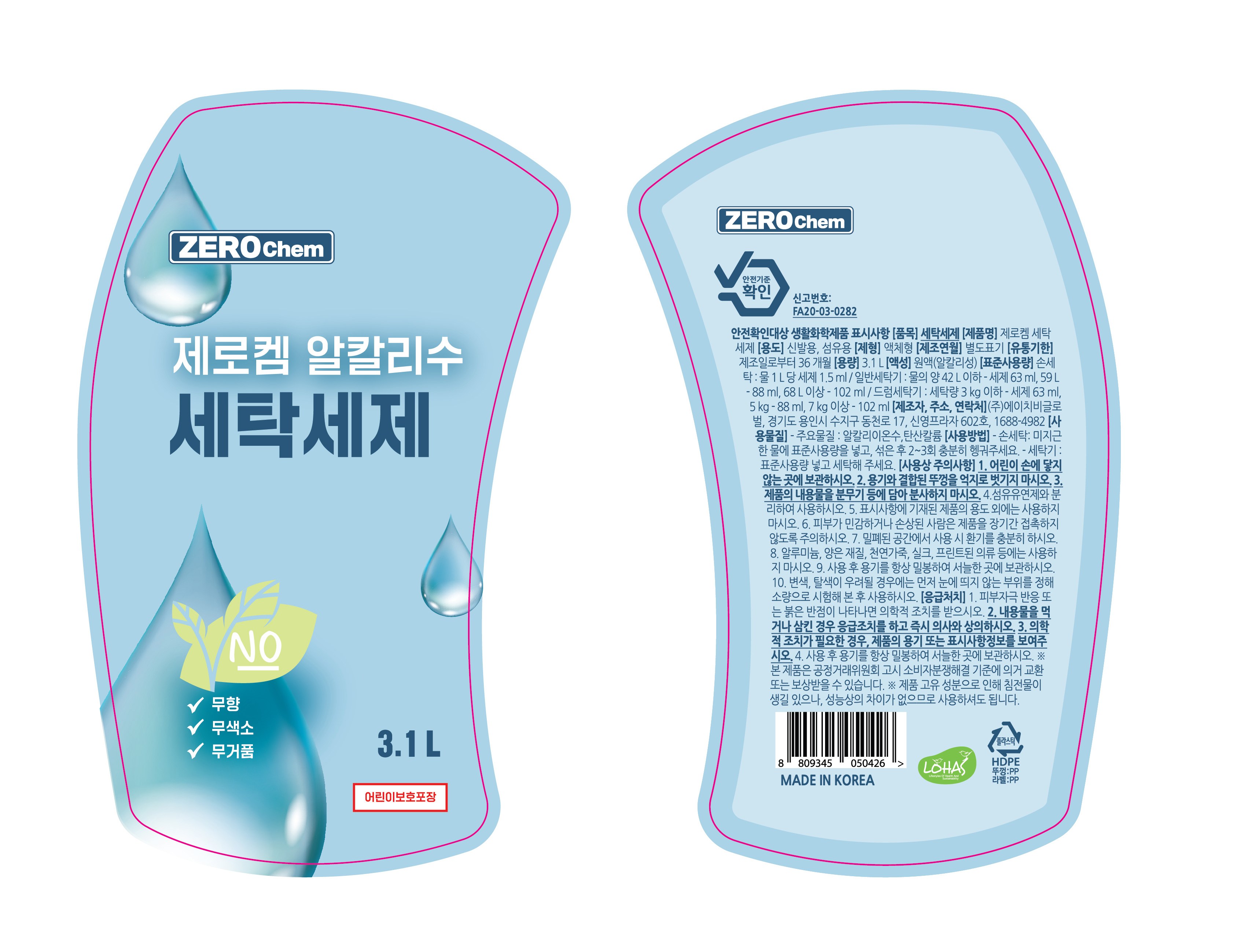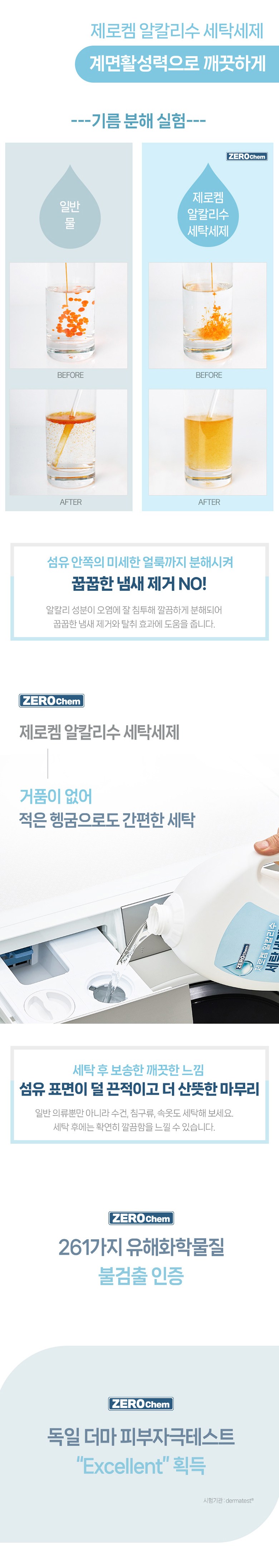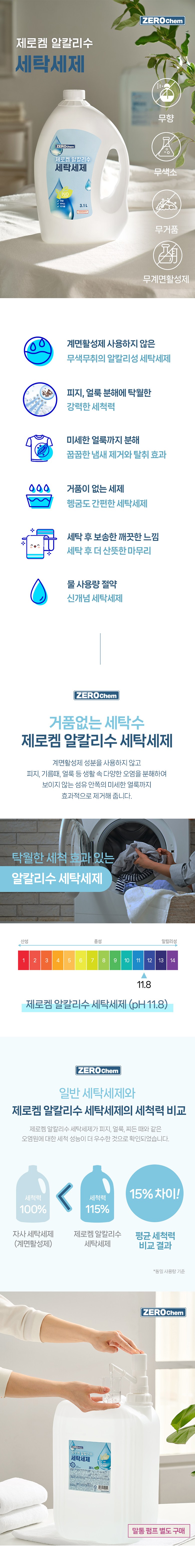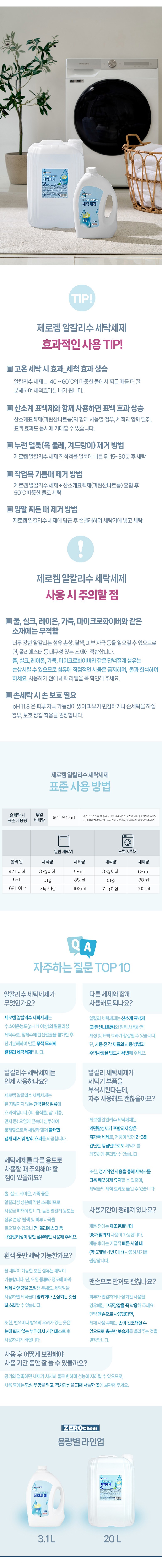| 품목 및 제품명 | 세탁세제 / 제로켐 세탁세제 | 용도(표백제의 경우 계열을 함께표시) 및 제형 | 섬유용, 신발용 / 액체형 |