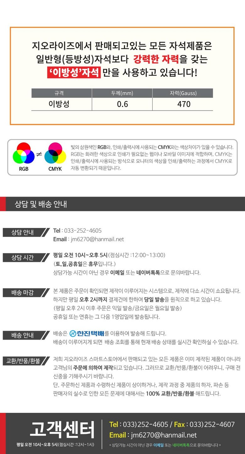 - ㆍ모니터 해상도의 차이로 인해 색상이나 이미지가 실제와 달라, 고객이 단순 변심으로 교환/반품을 무료로 요청하는 경우