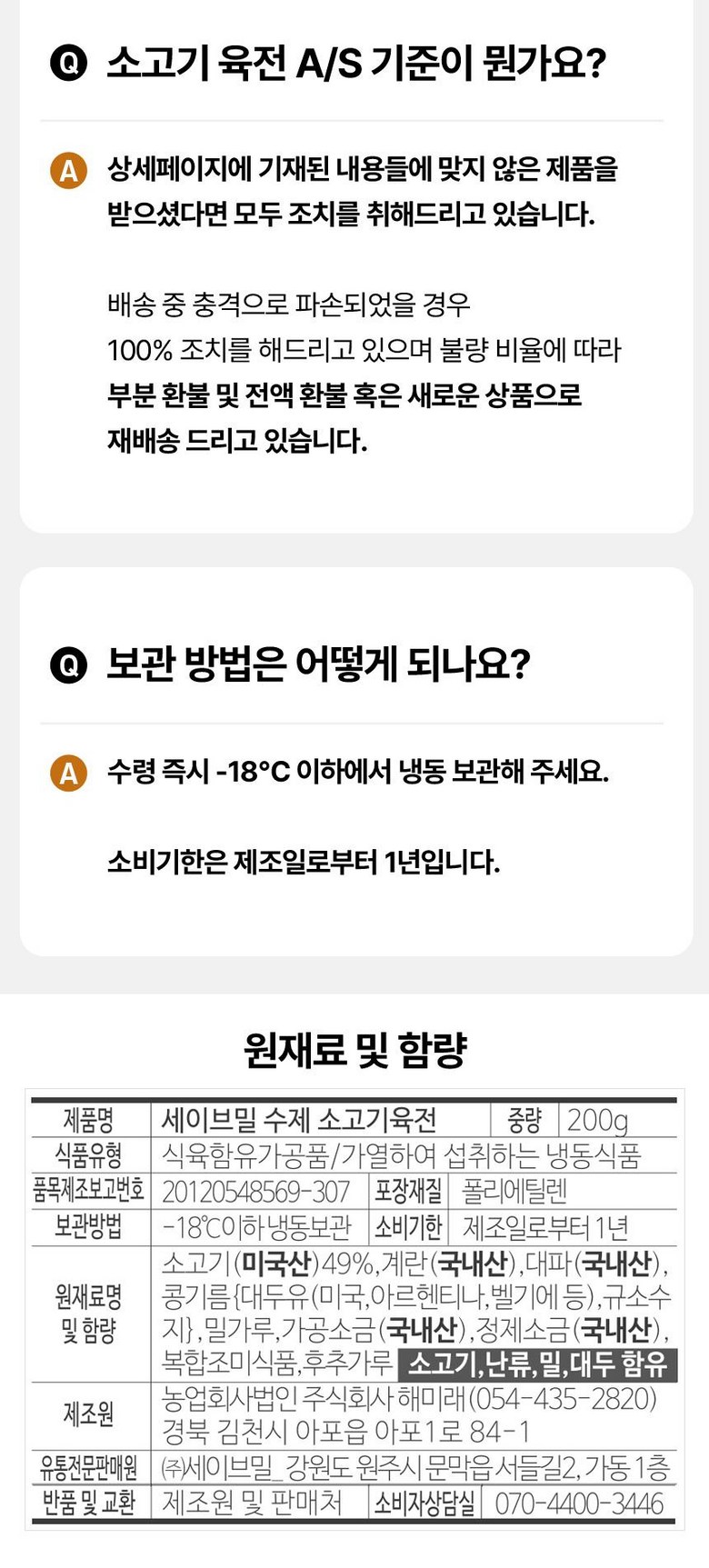 | 생산자 및 소재지 | 상품 상세페이지 참조 | 제조연월일, 소비기한 또는 품질유지기한 | 상품 상세페이지 참조 |