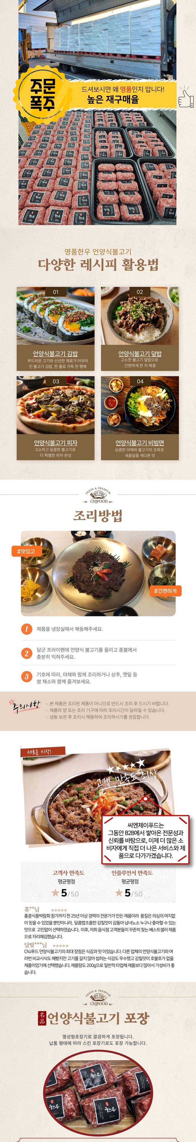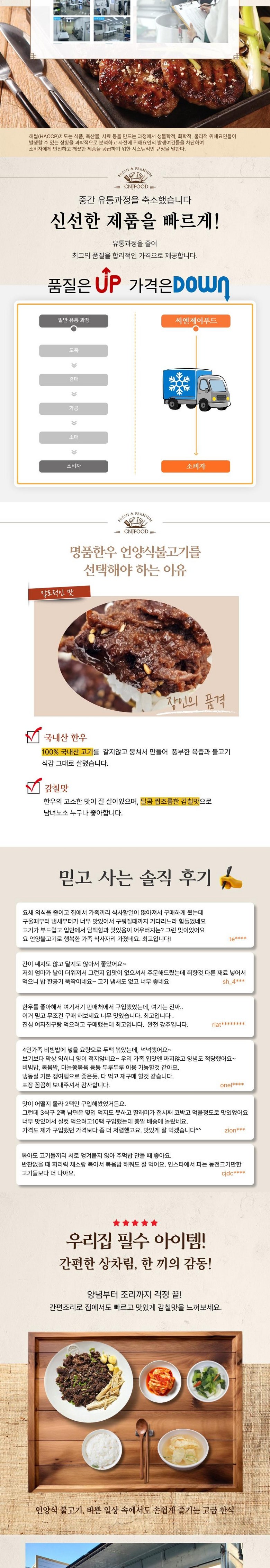 | 품목 또는 명칭 | 명품한우언양식불고기 | 포장단위별 내용물의 용량(중량),수량,크기 | 200g/팩 |