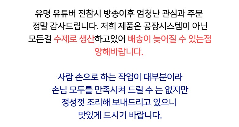 - ㆍ모니터 해상도의 차이로 인해 색상이나 이미지가 실제와 달라, 고객이 단순 변심으로 교환/반품을 무료로 요청하는 경우